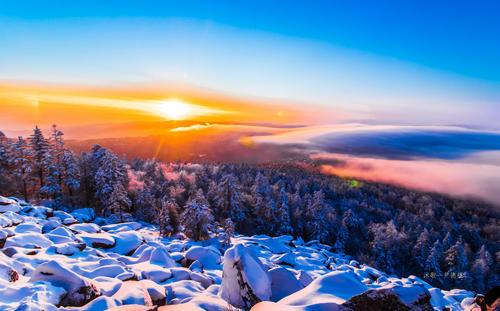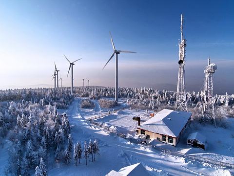 作为一个摄影爱好者,我曾几次来到带岭大箐山山顶的瞭望塔拍摄冬日林海雪原日出。黑龙江冰雪之冠形象宣传的图片就来自于大箐山。大箐山既有连绵的群山,又有一片神奇的石海,这里还是一个风力发电厂,走在巨大的电车雪原中,辽阔、气势、空旷、宁静的感觉,可以清洗一下尘世中的心灵。