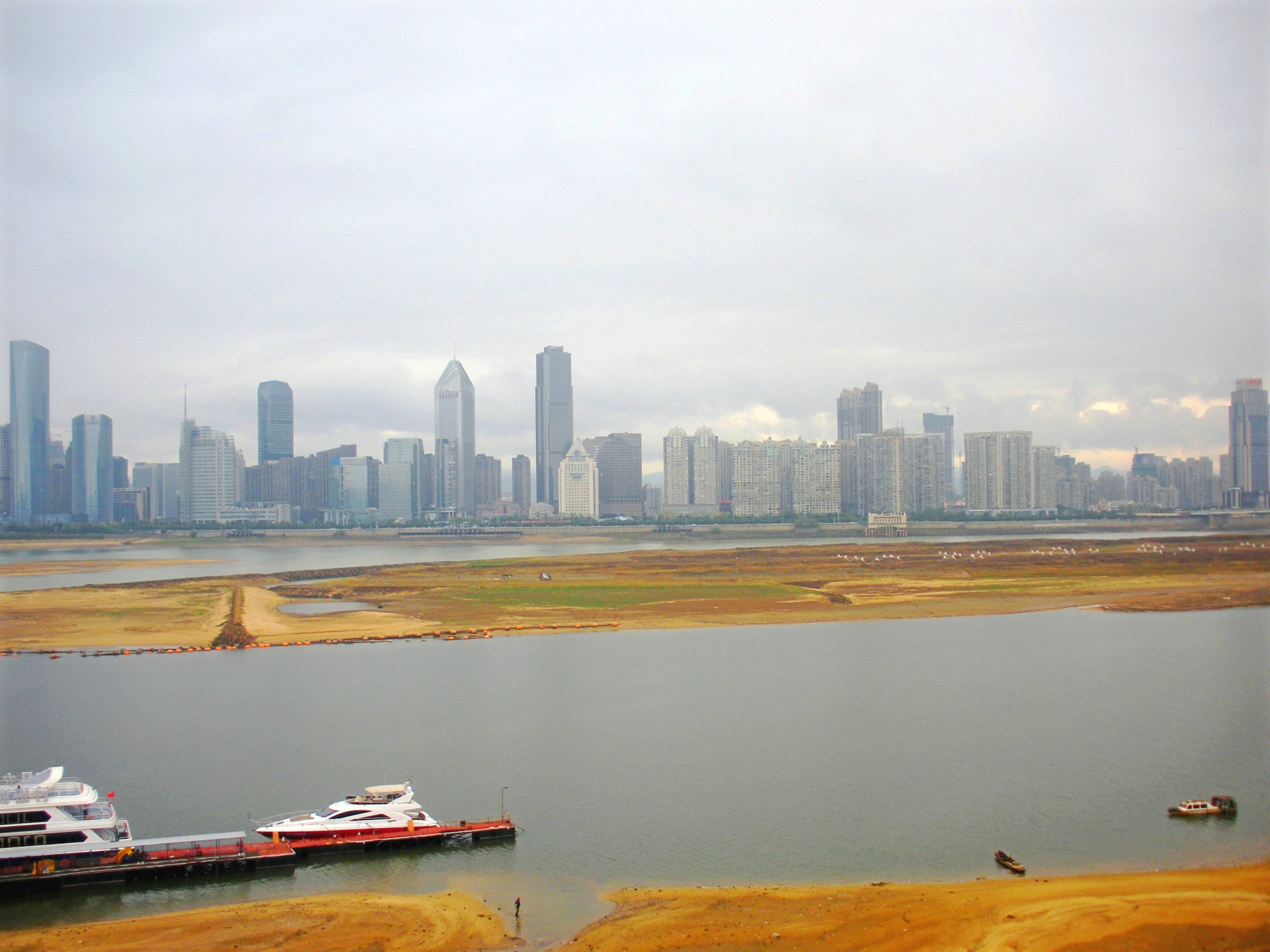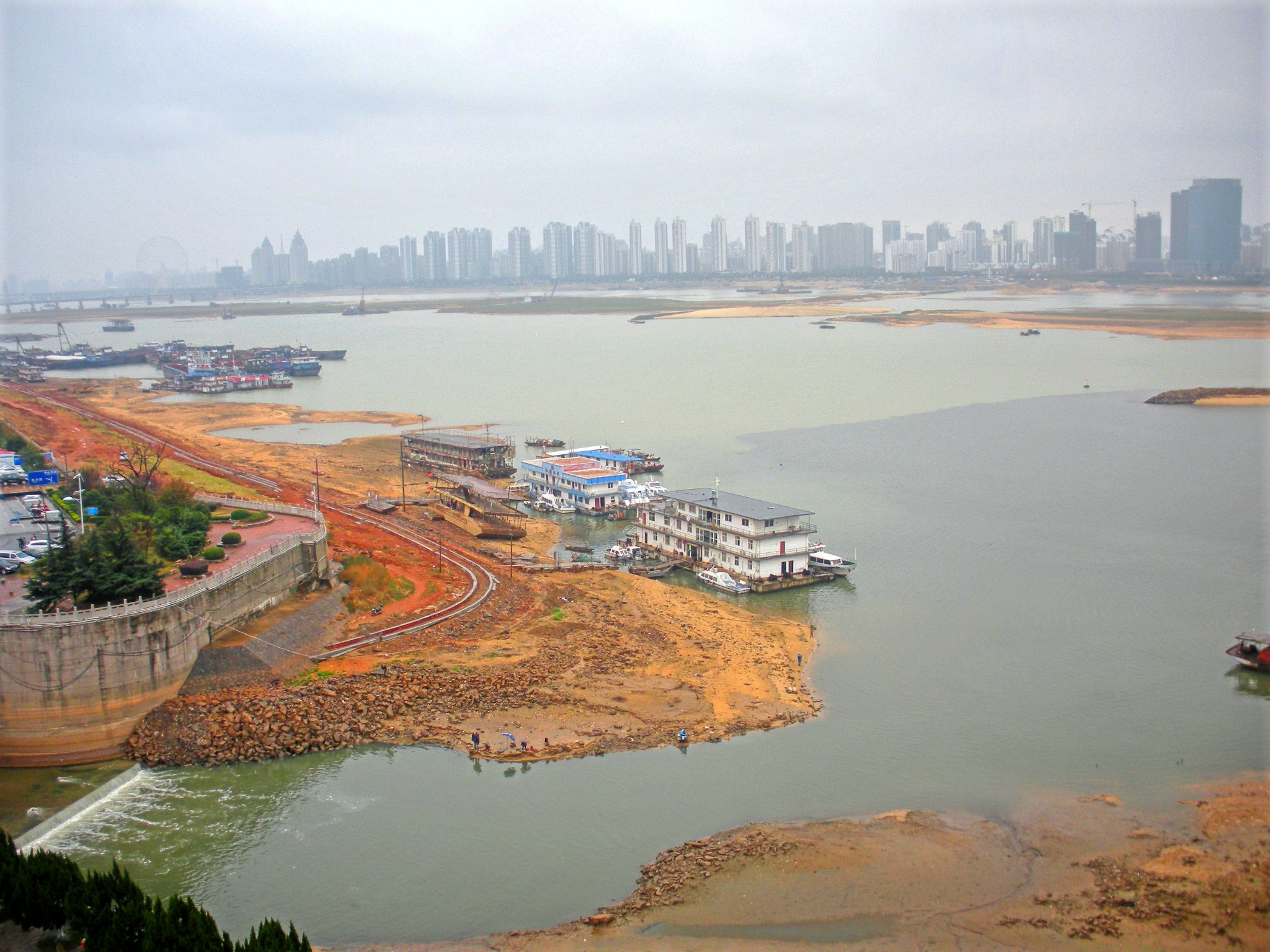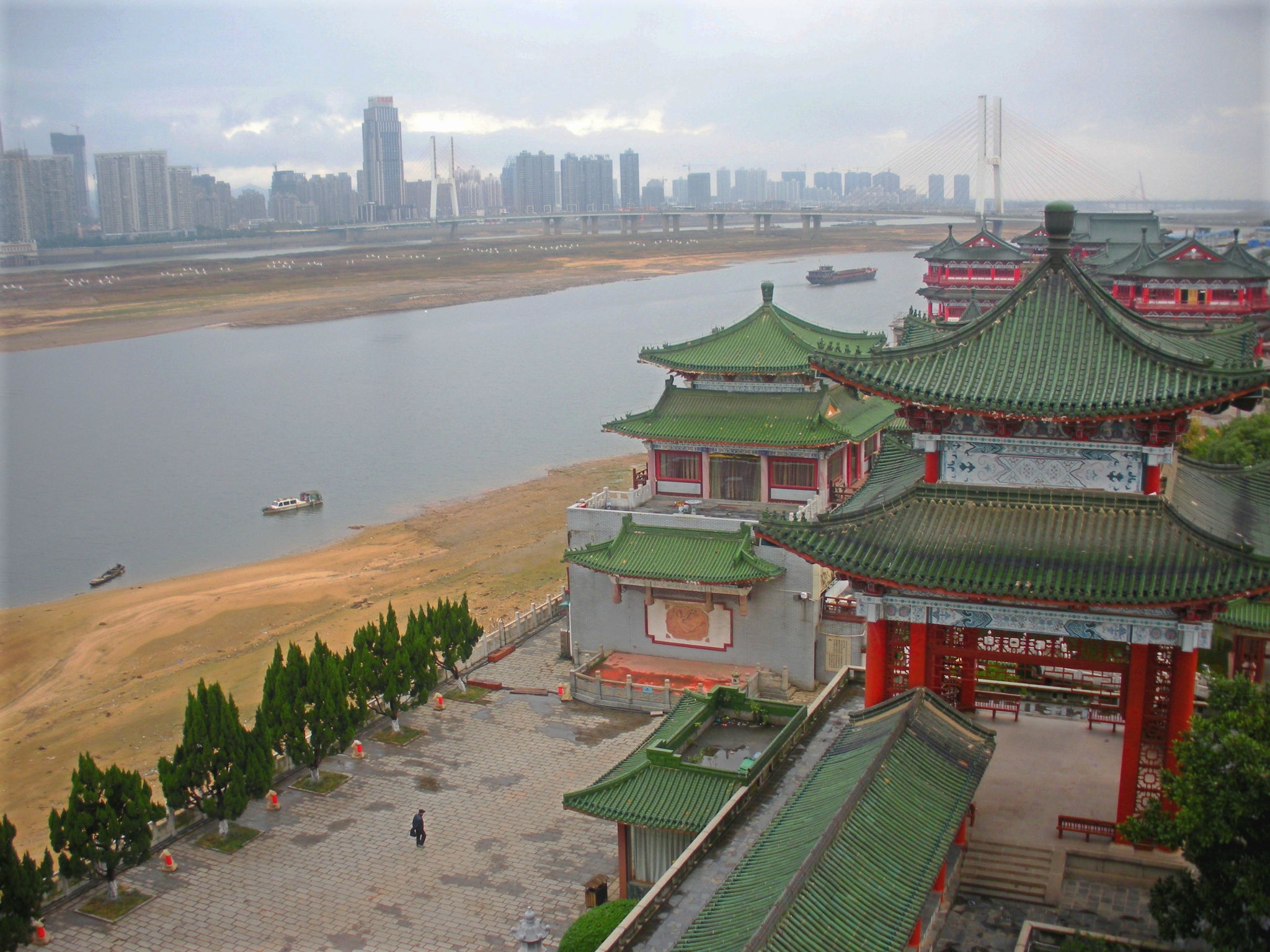 赣江源出赣闽边界武夷山西麓,自南向北纵贯全省,是长江的主要支流之一,通过鄱阳湖与长江相连,是江西省水运大动脉,也是该省最大河流。赣江南昌段水域比较宽广,水位也很平静,流域景点也多。赣江之于南昌有点母亲河的味道,江南三大名楼之首的滕王阁就在南昌市沿江路赣江东岸,登上滕王阁是眺望赣江的最佳观景点,茫茫的赣江水面平静,河对面就是南昌的红谷滩新区。个人感觉污染较重,江面时常出现“泾渭分明”的清浊两色。