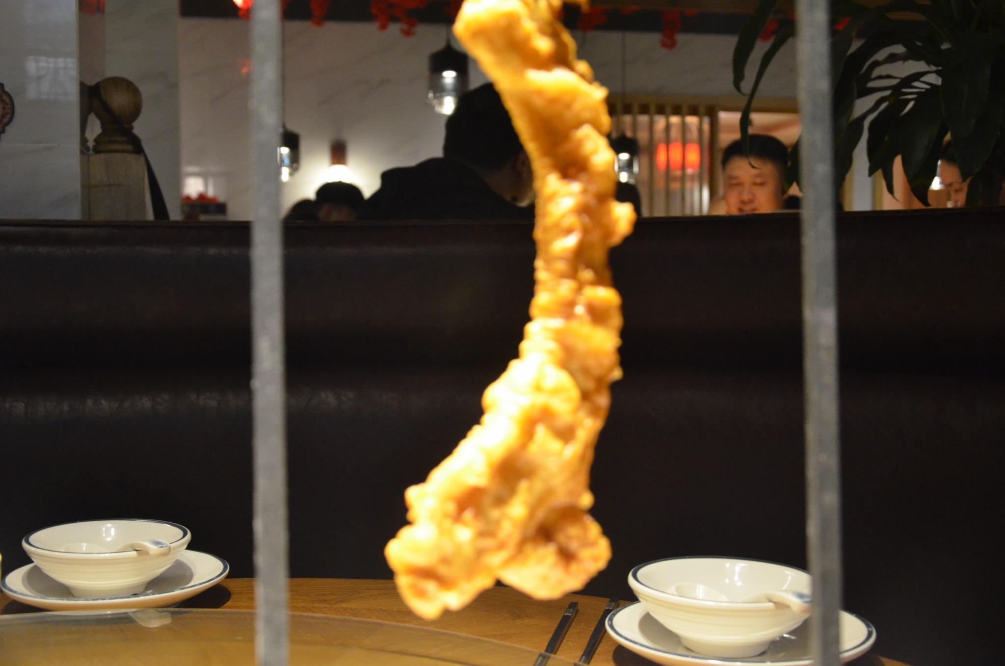 龙门吊肉:有专门的小哥哥帮忙剪肉,放在盘子里装好,肉脆嫩爽口,外面的裹粉炸的很完美,一口接一口的停不下来。