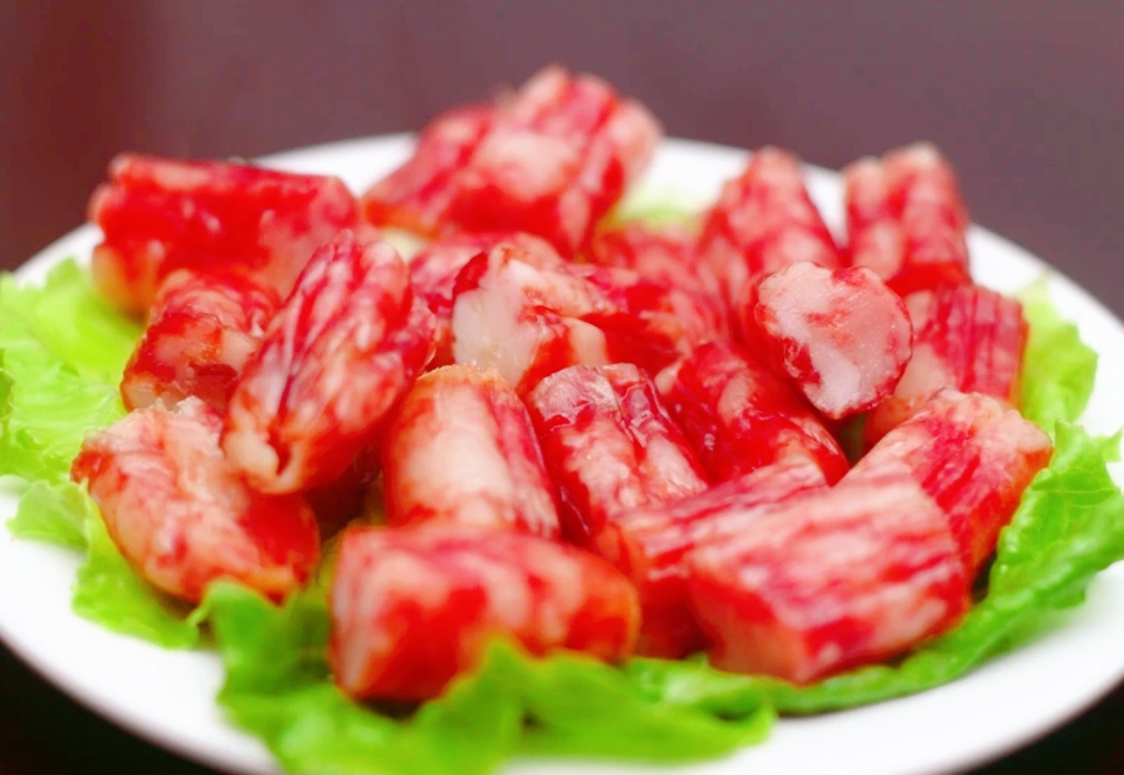 小腊肠:小腊肠是成都特产,圆滚滚的小香肠肥瘦相间,切成了适口大小,微甜的口感十分广式,甜辣的双重口感令人着迷,解辣的同时满足感也会double!