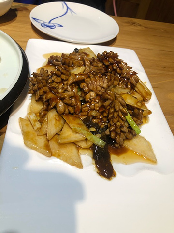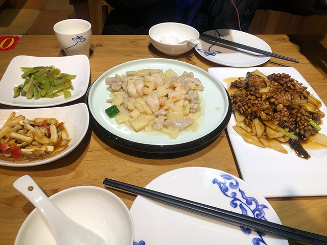 紧邻大明湖西南门,在马路对面商场2层,误打误撞进去的,点的腰花和哪个叫什么菜忘记了^_^,就是有笋,肉片,虾仁……就叫溜肉片吧!客人很少,腰花过酸,溜肉片有点淡,最满意是赠的两个小菜口感非常不错👍芹菜脆脆的,咸淡适中。服务员态度相当不错,开门,添水,服务热情周到,建议厨师稍微改进下当家菜菜品。