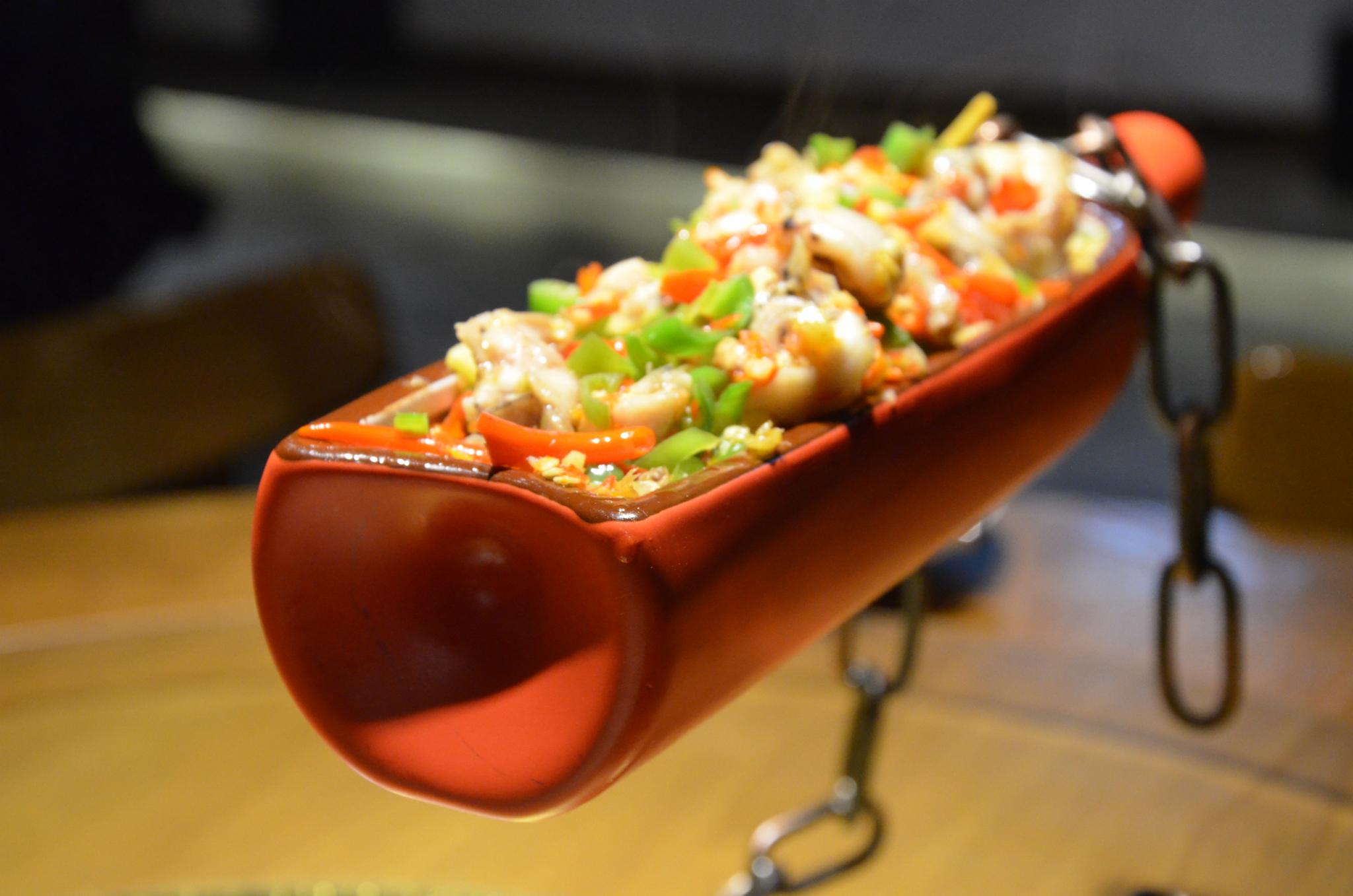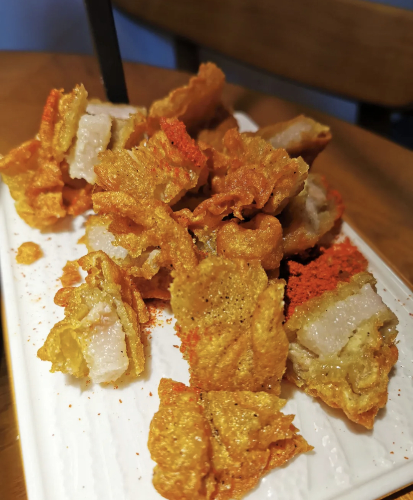 龙门吊肉,这道菜有专门的小哥哥帮忙剪肉,放盘子里装好,脆脆的口感,外面的裹粉炸的很完美,吃多了也不会觉得腻,这也算是他们家的一个招牌菜品了,挺有特点的。