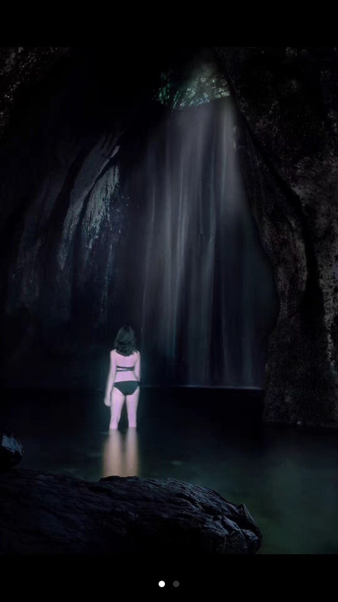 我们胆子比较大,脱了鞋子涉水步行了几百米,终于看到洞穴瀑布。估计敢晚上去打卡的也没谁了。