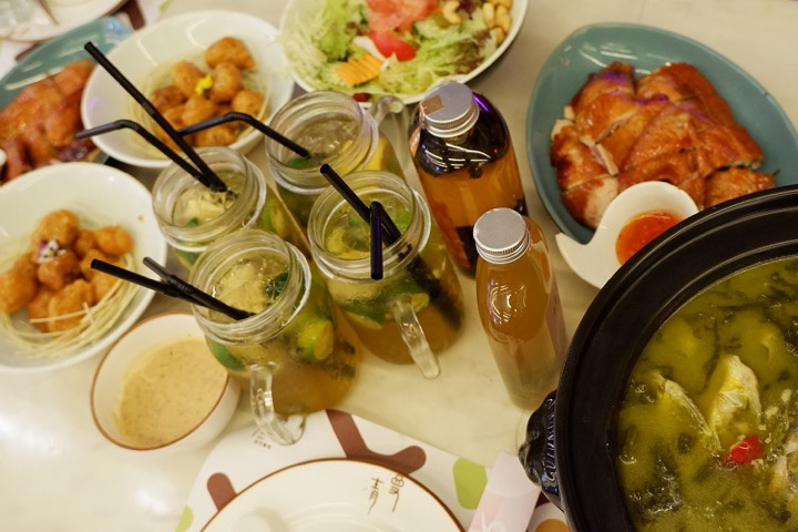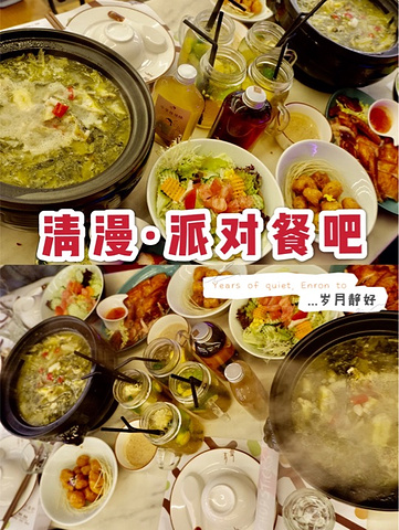 一晚上的夜宵吃两顿估计也就我们了吧 结束了愉快的年会时光,跑到琶醍享受美妙的宵夜时光 •🌈环境:不得不说珠江边吃饭是真的超级享受的一件事儿,如果天没有下雨、天气更好一些的话,这种氛围会更棒的;室内自然也是不错的,华灯初上以后,还有驻唱歌手呢。 •🍒服务:小哥哥服务态度还可以吧,下雨了动作不算快 •菜品: 【漫香鸡】 ¥128.00 这个鸡肉🐔是今天这顿饭里面比较好吃的一道菜了,鸡肉其实还算可口 如果觉得味道不是很重,可以蘸一点酱料,甜甜的酱汁搭配嫩嫩的鸡肉还是不错的。 【脆皮咕噜肉】 这个一份不算多么好吃的🐷油炸肉,因为卖相不算好,加上我也不怎么喜欢这种做法的肉,所以并没有下筷子吃。 【派对沙拉】 好清淡的沙拉🥗感觉,里面果仁倒是蛮多的,西柚、青瓜、胡萝卜、腰果还有各种种类的生菜,比较适合正在减肥的你,或者想要清淡吃饭的你。 【酸汤黄骨鱼】 这个是炖在砂锅里面的,下面还在煮着,慢慢的变热煮沸,因为是酸汤的,比较的开胃哦 里面🐠黄骨鱼,数量还蛮多的,吃起来很嫩啊,这碗鱼汤一定要搭配一碗米饭。 •••••••••••• 🌼🌼🌼🌼🌼 ••••••••••• •🏠店铺:清漫•派对餐吧 •📍地址:磨碟沙大街118很好琶醍B区2楼 •🚇交通:有轨电车琶醍站 •💰人均:¥125.00 •🈺营业时间:17:00-02:00次日 •🌟推荐:这里最棒的是珠江夜景,吃的就是情调和环境