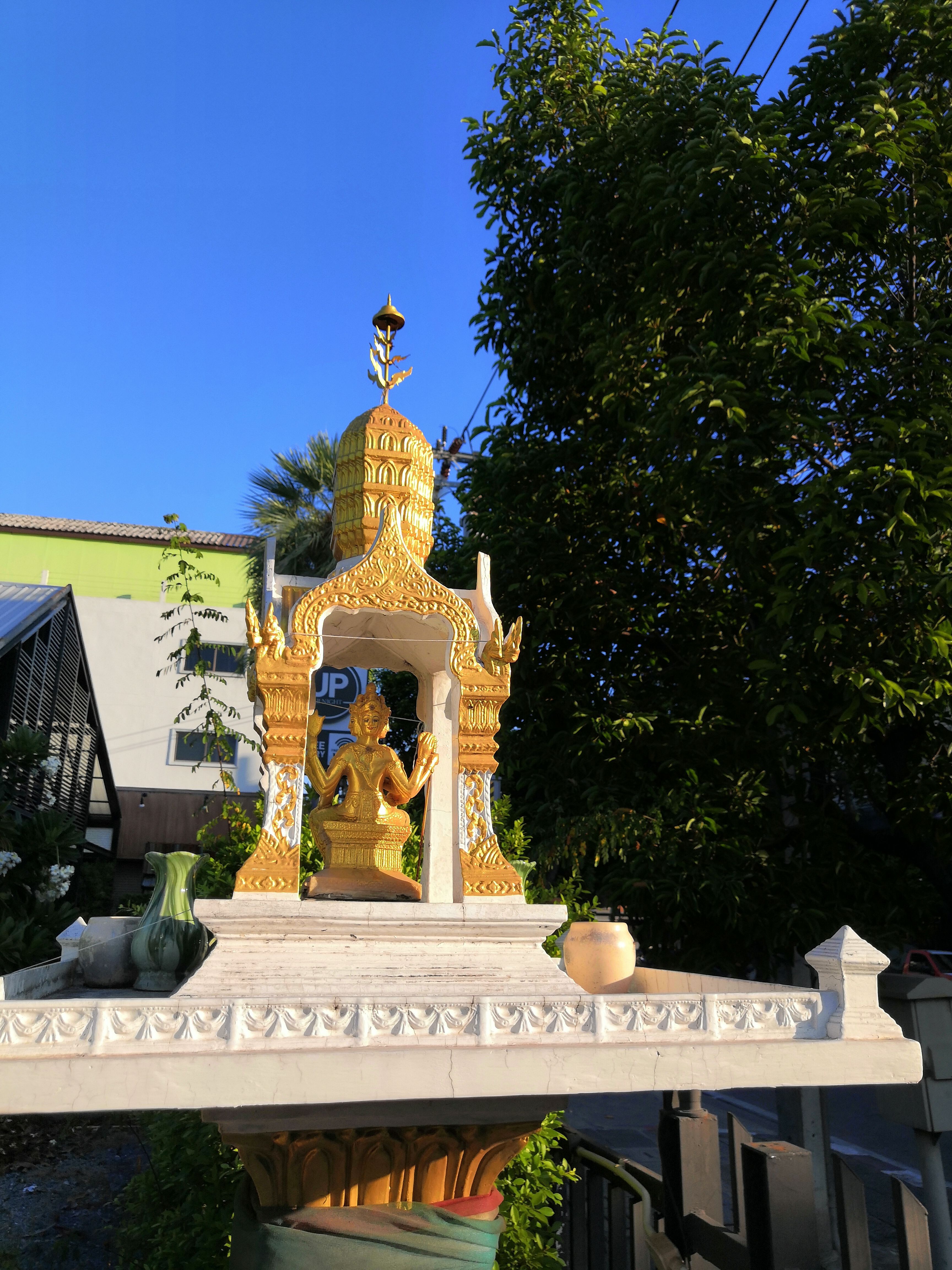 泰国百分之九十五的人信佛。一个异国来此散心的人,无目的的走在曼谷郊区的小街小巷,当地人的从容,当地人的微笑点头,大大小小的四面佛台,真的使人非常放松,心情十分的舒畅。
