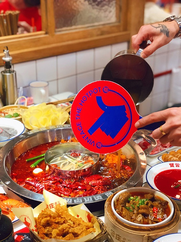 闺蜜是陈赫的铁杆粉丝儿,吵着要来吃他家的火锅。于是我们舍命陪君子,排队排了两小时终于吃上了。 为了对得起排队时间,放开了点了一大桌。店里有曾小贤的3D漫画版,可以坐在旁边一起拍照。还有二维的漫画墙,看起来就很欢乐。 菌汤鸳鸯锅 相信我 辣度选微辣足够了,微辣就已经辣得足够爽叻。辣锅里好料多多,鹌鹑蛋、卤牛肉、牛舌、牛油、红辣椒。。。看起来就很诱人,卤水火锅吃起来更香。 毛肚 空运九尺鹅肠 都是川味火锅必备,鹅肠和毛肚都是煮个15秒左右,脆爽鲜嫩,嚼劲十足又麻辣过瘾。 川卤最近大行其道,这里的卤味也是必点的。 一碗牛杂 牛肝、牛肠、牛肺、萝卜。。。每样都很入味,闺蜜吃得不亦乐乎。 笋片王 笋片也是每次川味火锅的必选,一定要多煮一会儿,入味的笋片又香又辣,吃起来特别过瘾。 血旺 红彤彤的一碗血,是不是也寓意着来年一片长虹?血旺要多煮一会儿,直到浮起来才能吃,嫩滑细嫩的血旺吃了好几块。 老街冰汤圆 红糖冰粉 吃川锅也不能忘了川味甜品。更喜欢冰汤圆,配料多多,甜蜜解辛辣。