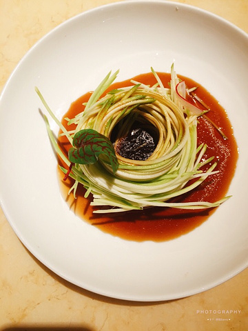 位于JFC B馆四楼,可以坐直达电梯上来,门口有盆栽植物,给人感觉很清新,还有小朋友玩的乐高积木桌,泡茶桌。 店里有靠窗位置也有包厢,环境优雅舒适。 服务态度很好很贴心,有宝宝椅子宝宝餐具。 餐前有水果,茶点,茶水。 油醋小丝瓜 丝瓜切成丝看起来像面条一样,淋上油醋,吃起来酸酸甜甜的味道。 招牌熟醉蟹 果然是醉蟹酒味香醇,用的是阳澄湖大闸蟹,里面膏超多的,吃起来味道鲜美。 厦门酱油水海鲜组合 传统的老厦门风味,酱油水杂鱼,鱼肉乡里,味道鲜嫩。 皱皮椒炒熏肉 最爱青椒的我吃得很过瘾,熏肉吃起来很有嚼劲。 芥菜粥水浆贵妃蚌 看起来有点像米汤,里面有贵妃蚌,吃起来脆脆的,底下还有小米,可以当成汤喝,挺舒服的。 不得不说这里的米饭也很好吃,吃起来有嚼劲,米饭粒粒分明。 Tips : #哆啦爱美食# 【餐厅名称】上饍•中国厨房(建发JFC品尚中心店) 【餐厅地址】环岛东路JFC品尚中心B馆4楼 【所属菜系】福建菜 【人均价格】160+ 【特色美食】招牌醉蟹