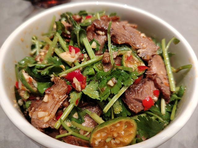原来,丫丫厨娘(喜荟天地店)除了柠檬鸭、横县鱼生还有那么多各地名菜:南宁老友鱼、白切安铺鸡、良庆脆皮扣、呗侬虾、古法焖羊蹄、小海鲜蟹煲、青柠拌牛腱、白玉丝瓜、黑豆炒芥菜等等,真是到一家,吃十家。广西好食材,味道顶呱呱。