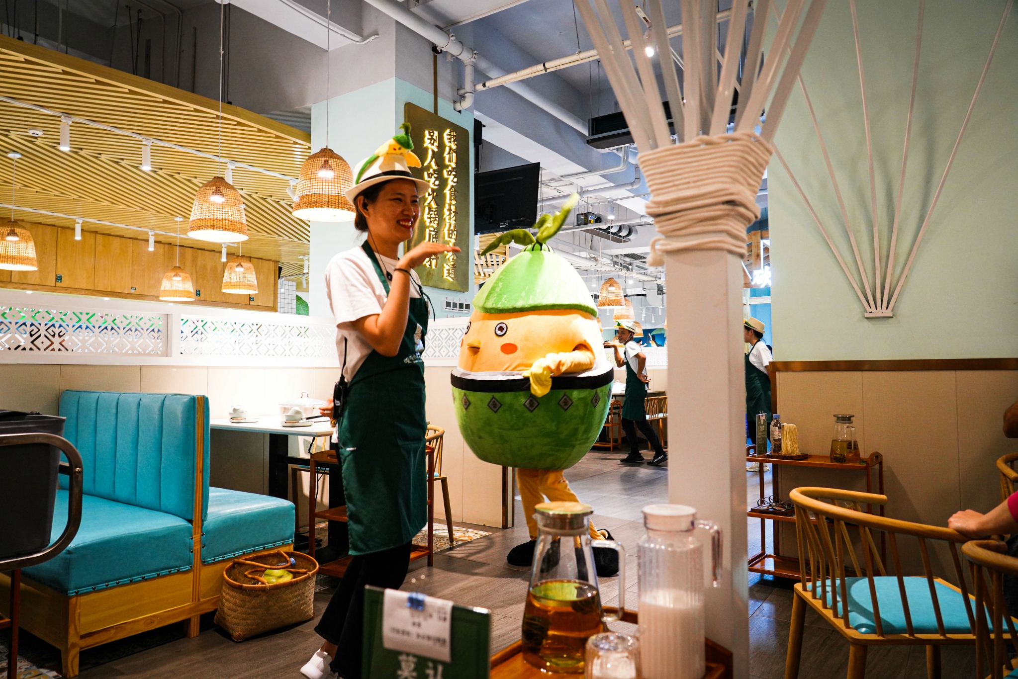 店里的装潢是亚热带风情,多出绿色植物也展示了海南的地区风貌。台面上,整齐划一的摆放着一排椰子,与这家店的特色遥相呼应。往里走,便有一处是开椰子的区域,地上摆放了无数的椰子,有几位工人,正在地上熟练的开椰子,这令我们这些外乡人着实开了眼,是一个极其新鲜的经历。