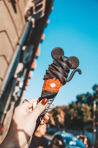 🍦店名:Corner Cone Gelato(武康大楼店) 💰人均:¥32 ⏰营业时间:9:30-18:30 📍地址:上海市淮海中路1852号武康大楼底楼 之前心心念念圣诞款冰淇淋,元旦去时已经没有了,但推出了鼠年限定:米奇、米妮、哥斯拉,又是另一重惊喜,过段时间说不定又有其他新款了!平日限量100支,周末限量200支,据说新年款只限时10天哦~ 看到武康大楼底楼排长队的就是这家冰淇淋店了,但等一会儿就能吃到了。 米奇造型做得有模有样,大耳朵大眼睛小尾巴还有红衣服哈哈,可爱得都舍不得吃掉。拿到冰淇淋当然是先到地标武康大楼前合影,不过大晴天冰淇淋很容易化,拍照要抓紧哈哈。 米奇款吃起来是浓郁的可可味,甜度刚刚好,但会让嘴巴变黑,也要小心滴身上哦~