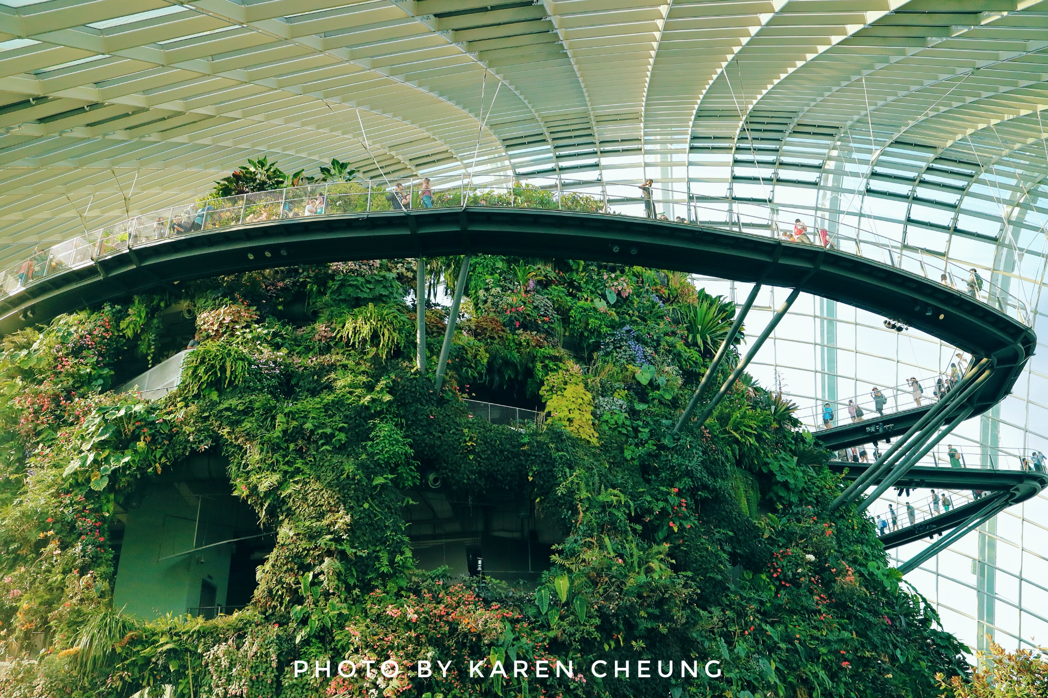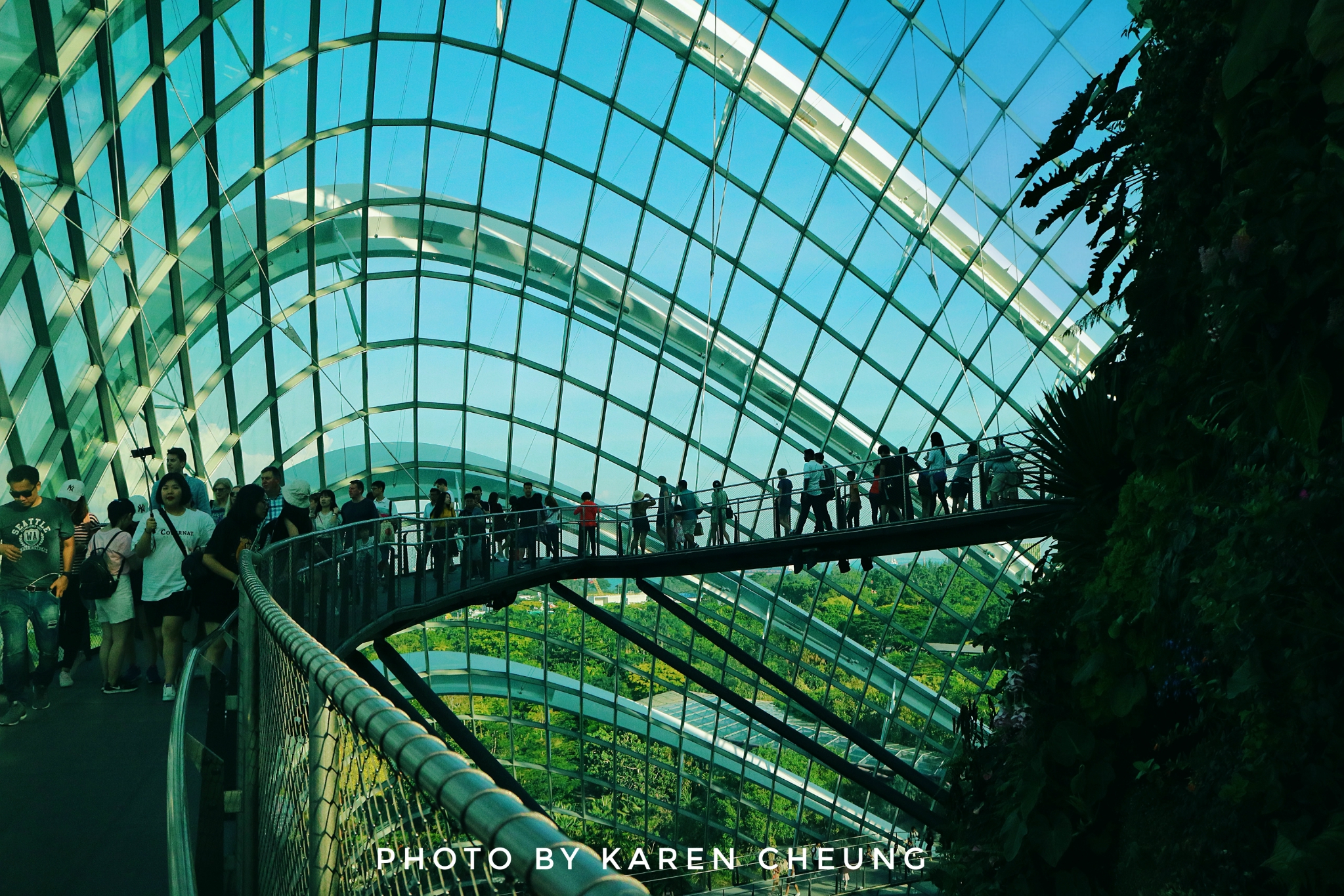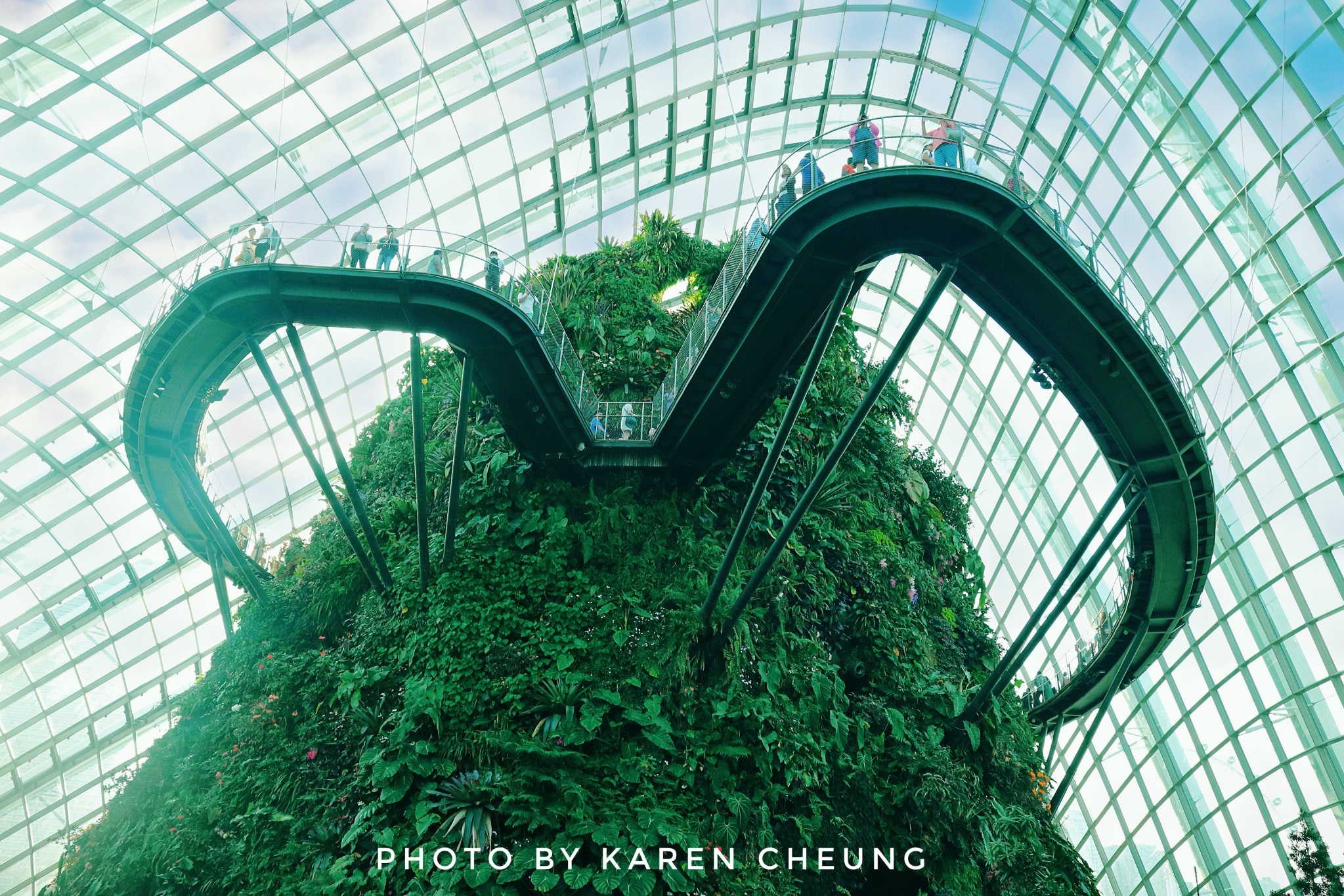 1.乘电梯到山顶,通过空中走廊一层层往下参观,各个角度打卡云雾林,欣赏建筑与植物美学。