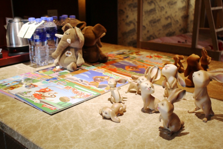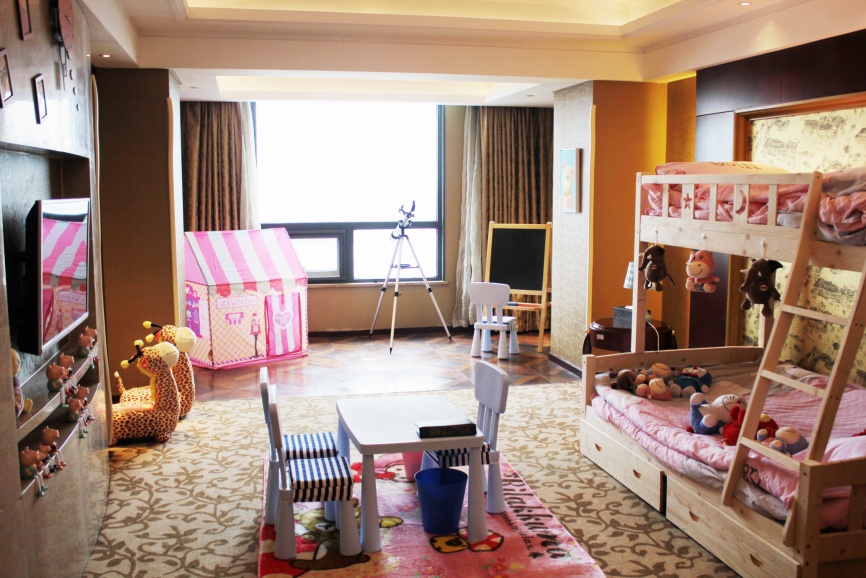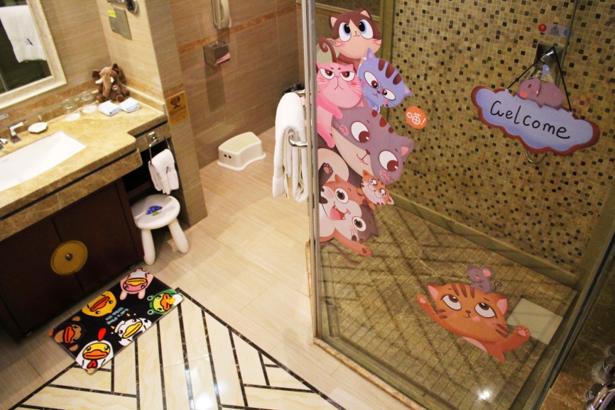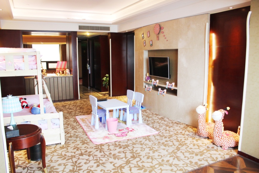 不得不说,亲子房是我入住酒店中最好的,房间也大、还配备了儿童牙刷和儿童拖鞋,还有小孩最爱的玩具和玩偶,尤其那个小猪佩琪一家简直爱不释手,非常nice。酒店大堂小哥哥听说小孩过生日,还特地送来了水果和蛋糕,小孩非常开心、还省了我们几百块钱。(因为太开心了,忘记拍照了)真是幸福感爆棚。小孩嘴里一直念叨,妈妈我们下次还来。
