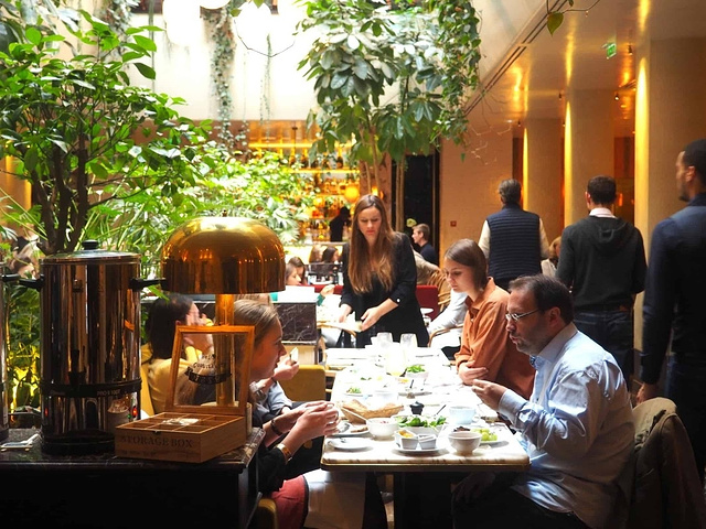 非常满意的一次用餐体验。我和女朋友都觉得很超值。来这家店,其实也是巴黎的一位朋友推荐的,女朋友作为四川的好吃嘴,当然不会错过这种巴黎的网红餐厅。到点以后,感觉用餐环境非常好,基本上都是绿色植被,像是一个内置的花园,可能是他们家的特色吧。上菜还挺快的,服务员也挺耐心的,我和女朋友的英语都不是很好,但还是帮助我们完成了点餐这些。我们前菜要了一个沙拉,主菜我选的是焗蜗牛,女朋友要了一道鸭肉。真的挺好吃的哈,领教到了法餐的魅力了。因为太赶了,所以没有来得及拍照这些,盗几张官方的图吧,给他家看一些他们家的菜色。对了,他们家还可以用支付宝哦,瞬间感觉回到了祖国,有没有哦!啥也不说了,好评!