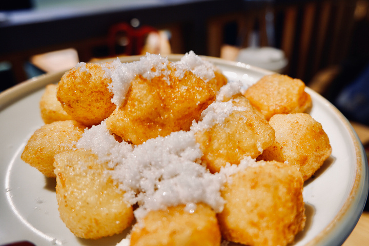 晚上的第三顿了 烤肉—馋猫 地址还算好找,环境也不错 店里面人不多,所以上菜很快 自己烤肉就是迅速 口味整体还算可以吧 🌽服务:小姐姐态度还是蛮好的,上菜也很速度,而且这个烤炉比较温和 🧀环境:整体店铺还蛮整齐的,桌椅也比较舒服,烤炉高度也合适 🐔鸡脆骨¥30.00 这个相对来说比较的难烤熟 而且很容易被油炸到手👋 烧烤还是要小心哦 🍖黑椒肠 ¥18.00 份量是很大的,烤起来也不错 肉质感还可以啊 🥩精品猪五花¥35.00 猪肉里面肥瘦相间的猪五花 真的非常适合烧烤 蘸上酱料吃不错 🐮鲜牛肉¥42.00 鲜牛肉真的超级嫩 不错不错,不要烤太久哦 🥬蔬菜拼盘¥28.00 生菜+金针菇+红薯🍠+鸡腿菇 🍜东北有机酸菜¥18.00 这个酸菜不算好吃,可以再酸爽一些 不够有劲道,口感一般了 🥞炸打糕¥28.00 这个上面撒了白糖 里面是糯米馅,其实味道还蛮好的 就是我吃饱了吃不下啊~ 🥕酱料台 可以选择的倒是不多 不过有我喜欢的醋,就足够啦 ——————🎈🎈🎈————— 🏠店铺:馋猫 🚌交通:公交🚌金家漕站 🅿️停车:长丰聚亿广场停车场 🕰营业时间:15:00-24:00(春节1/24-1/31休息) 💰人均:¥80.00