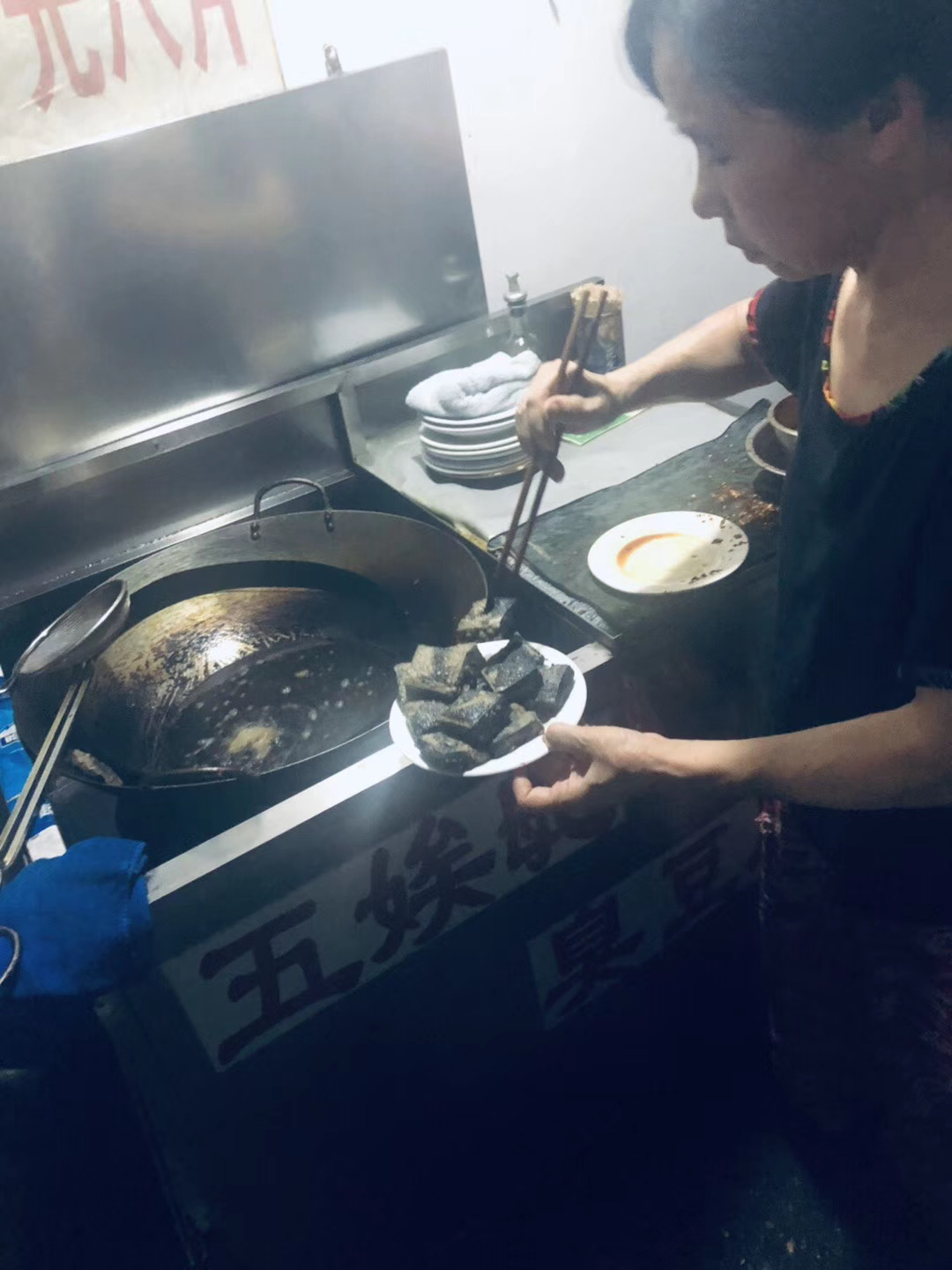 吃吃逛逛了一天,我们走路回酒店,然后特意弯路去吃了臭豆腐,据说这家臭豆腐店开了20多年,我们到的时候还排了一长队,但真的物美价廉,十元八片。