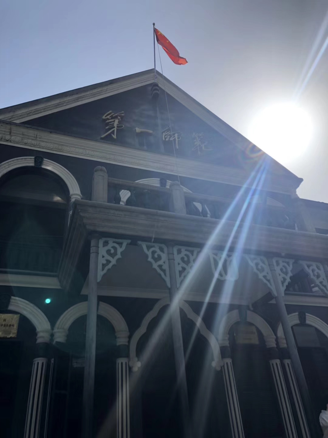 今天我们睡得很晚,酒店早餐提供到10点,趁着最后赶紧跑下来吃点。然后去逛了第一师范,就在酒店的旁边,步行5分钟吧。需要带身份证哦,进去好方便。