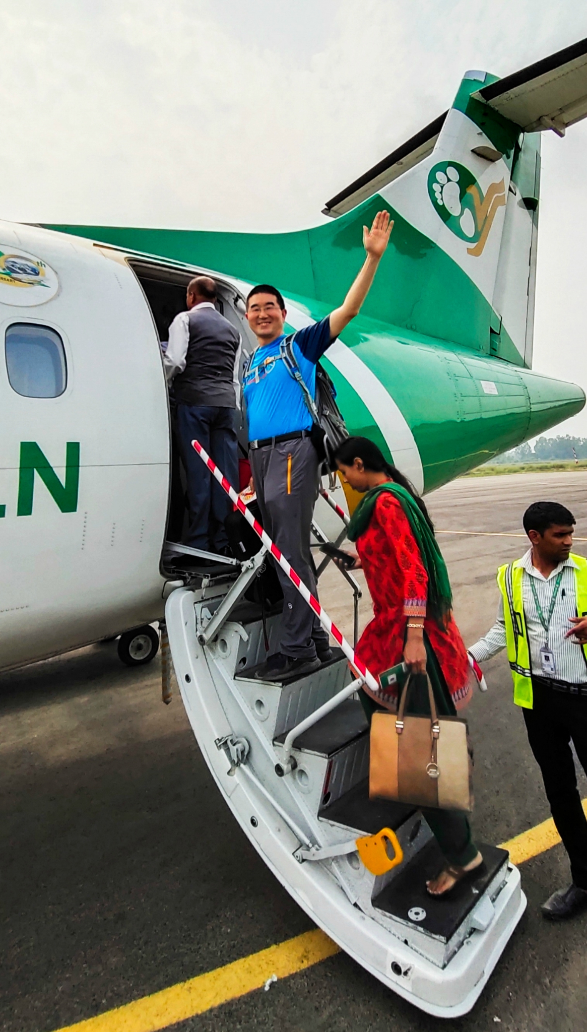 贾纳克普尔机场登机前留影