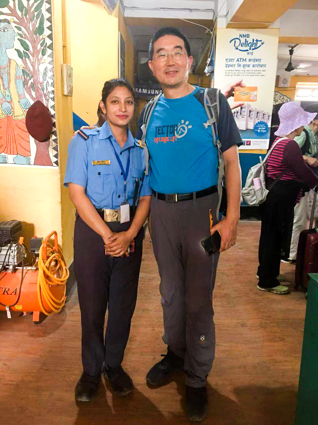 和贾纳克普尔机场的美女服务员合影