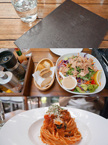 🍕深圳 | SUGO意大利餐馆玻璃花园🥗百元内无限回头🍴 📍 蛇口 | 南海意库 创意园区内3栋116铺 🌟 独栋玻璃小花园房 · 舌尖上的意大利菜 💠 营业时间 | 8:00am-23:00pm 💰 人均 | 89元/人 🚇 2号线*海上世界站C出口 步行450m即可到达 ———————————— 🌿「SUGO」惬意的意大利小餐馆,在南海意库创意园区伫立在路边安静的小角落,意式装修进入了欧洲小镇花园,美食新鲜份量足,值得拔草一番🌞 ———————————— ⚜️/欧式小镇花园风/ ▫️逛着创意园区,启动了觅食触觉,转角遇到SUGO路边安静的小角落。独栋的落地玻璃房,布满树藤的落地玻璃屋顶,木质栏杆围起的露台座位区域,高脚桌餐吧和四方桌座位。 ▫️虽然位置不多但感觉踏入了欧洲小镇,刚好中午时分,阳光透过绿叶照射进小屋,些许光束打在脸上,温暖舒服。 🍝/性价比极高的正宗意式料理/ ▫️SUGO比其他商场内的意式餐吧菜式价钱稍便宜,味道口感并没因为降价而扣分,份量依然非常足,还是美味担当,非常适合每次试一两道菜式,无限回头。 ▫️培根西红柿意酱面 | 79:摆盘精致的雪白意式大圆盘,配上法式面包与瓶瓶罐罐的酱料一同送上,端上来的意酱面研磨了些许芝士碎条,西红柿酱料飘香足味,搅拌后食用面条口感刚好,不软不硬,时日bruch份量刚好。 ▫️金枪鱼沙拉 | 69:意式经典菜式,一大盘上桌,金枪鱼布满碗上,配上一颗小柠檬挤汁并搅拌千岛酱后食用,口感分外清新开胃。蔬菜有丰富的洋葱圈、红萝卜丝、洋生菜和红心卷心菜,入口清脆爽甜,没有生蔬菜的青涩味,搭配着马苏里拉芝士一碗食用尽底,也非常饱肚哦! 🌻/阳光正好温暖/ ▫️落地玻璃小餐馆坐落朝向,秋分时节,正好Bruch时分的阳光非常舒服温暖,也是随意一拍分分钟能出大片的小角落。 ▫️看餐牌拍一张、品尝美食咬着小叉拍一张 ▫️路边和绿植树藤为背景,仰头看向阳光或马路 ▫️就坐在路边高脚桌上,假装看手机 ————————————