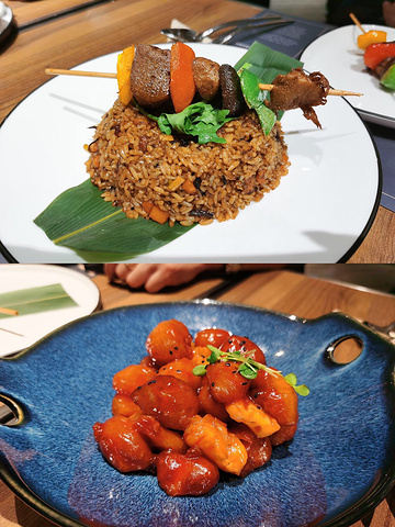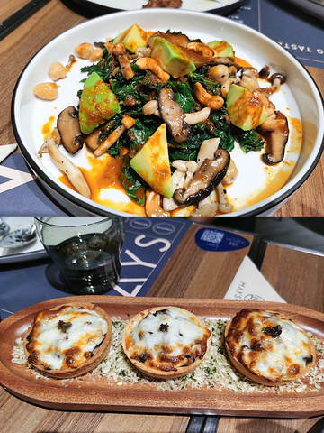 📍 珠江新城 | K11艺术购物中心负一层美食街 🎺 金属低奢风·轻食素食斋菜 🛎 营业时间 | 11:00am-21:30pm 💰 人均 | 85元/人 🚇 3号线/5号线*珠江新城站D出口 ———————————— 🎷「匠心精致的艺术空间」 ▫️坐落在K11创意艺术商场的美食店,设计感也一定非常夺人眼球 ▫️作为一家装修设计得奖的餐厅,一进门就把客人征服了,仅仅以素食斋菜为主食,但半开放式的餐厅装修为金属感十足的轻奢昂贵风格,纯金属色的铁网鸟巢天花板尤为加分,仿佛一条条动态的流动丝绸间隔开每个包厢,实属3D的精致艺术餐厅。 ▫️若不喜欢灯光偏暗、或觉得鸟巢天花较压抑的可以选择坐在外围区域哦,也并非直接连接商场过道的。 🥗「无国界创意菜融合」 ▫️区别于中国寺庙的传统斋菜,主打外国轻食素食,食材新鲜、摆盘精致诱人,关键只是“看上去”很贵,实际人均消费性价比是很高的哦! ▫️各蔬菜都喜爱配上浓香的芝士,饱腹感强,因此菜品热量也不低。无国界料理非常合胃口,食材搭配新颖,合胃口!菌类烹饪处理后肉感逼真!餐厅经常不定期推出新款菜品,迭代速度较快,实属不断推陈出新的创意菜。 ▫️餐厅虽然没有设置闭合式的包厢,但也接受10人以下的聚餐哦。我经过餐厅电话预订了一次家人生日聚餐,菜品没有踩雷。 🌮「推荐菜式」 海盐黑胡椒牛油果沙拉、和风玉衣海苔卷、孜然风味烤串(强推!!)、普罗旺斯黑松露菌菇挞(值得一试!!)、芝香野菌焗咖喱饭、松露牛肝菌扁面、台式三杯藕盒、咕噜三宝、上汤时令鲜蔬、XO酱皇牌炒饭 ————————————