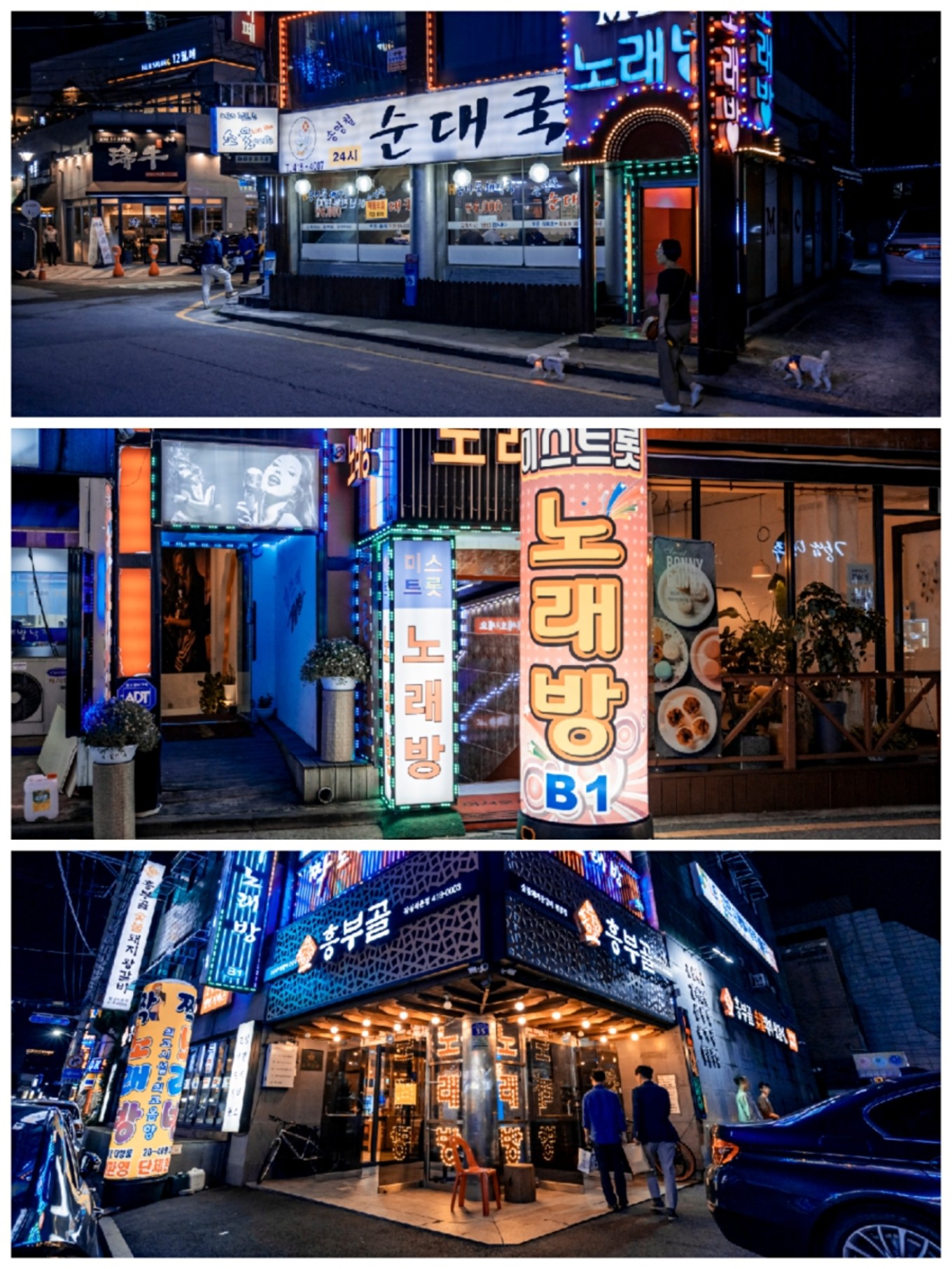 烤肉、烧酒、KTV是 韩国 人夜生活的老三样,能歌善舞的民族特性让 韩国 的KTV商业相当发达,但并不像我们的量贩KTV,取自黄金地段,高大上的装潢。在石村走一圈下来,看到了不下10家练歌房,或居地下或处高层,可能营造的是一种家庭的氛围。
