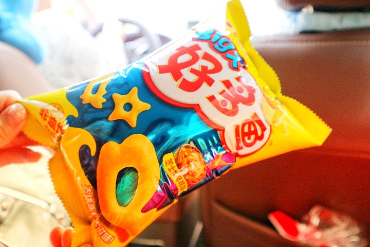 鼓起来的膨化食品,一路走,一路听到后尾箱砰砰砰的声音,是膨化食品压力太高爆破了,像鞭炮声,反而更鼓舞着我们。