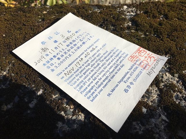 3000日元的参拜费,至少提前一个月从世界各地手写信预约参观。你问我这么费劲值得吗? 值得,用一种等一封情书的心情,去等一张参拜证。 西芳寺位于京都岚山地区,其名取自达摩祖师“祖师西来,五叶连芳”的语录,也因此,西芳寺的御朱印是达摩画像。来访者必须凭收到的参拜证才能交钱入内参观。而且到达后先在佛堂抄经,抄完供奉完才可以入到庭院参观。庭院非常大,分为两段,上段庭院为枯山水式庭院,下段庭院为池泉洄游式庭院。内种植100多种苔藓,也因此被称为苔寺。西芳寺之所以把参拜过程做的这么复杂就是为了保护苔藓。毕竟空气不好,是影响苔藓生长不佳的一大因素。 刚好在枫叶🍁季节前往,枫叶正红,苔藓依然很绿,完全不虚此行。 ⏰营业时间:开放日的每日9:30前到达寺庙门口 💰人均消费:参拜费用3000日元 御朱印500日元(非必需) 👍特色推荐: 寺内100多种苔藓观赏。虽然不能叫出名字,但看起来毛茸茸的就很开心。 📌实用tips: 在国内一定提前买好抄经的笔,搜“秀丽笔”即是。寺内也有售卖,但非常贵。 参拜预约流程: 某宝搜索购买“国际回邮券”,买一张即可。 准备一张用日文写的手写信,里面写好拟希望的参拜日期,人数,姓名地址。 然后准备一张空白的明信片,可以在无印良品买到。写好自己的地址姓名电话。 将以上三样装在一个信封内以挂号的方式寄到寺庙,这样可以追踪寄出的进程。 然后就慢慢等待即可。我是直到出发前三天才收到回信,顿时开心的像个200斤的胖子。 理论上提前一个月就行,但lilith建议提前2个月开始预约。邮寄过程至少3周。避免过于担心。 最重要的❗️不要相信淘宝代约,寺庙非常傲娇,当他发现回邮地址出现过多后会直接给你拒了。寺庙要的就是虔诚参拜的态度。只要时间够早,备选日期留的足够,只要是自己亲自手写信一般都会给。