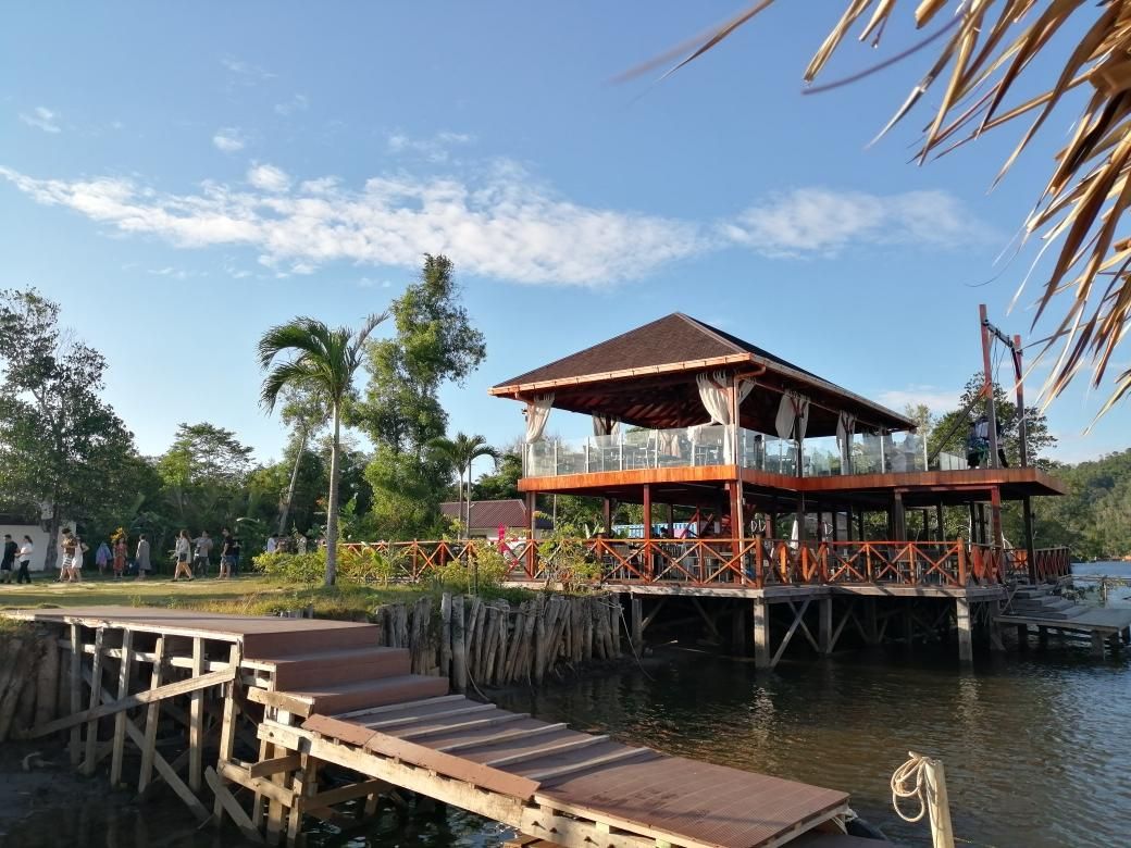 出发去看长鼻猴,上船后回看码头休息区