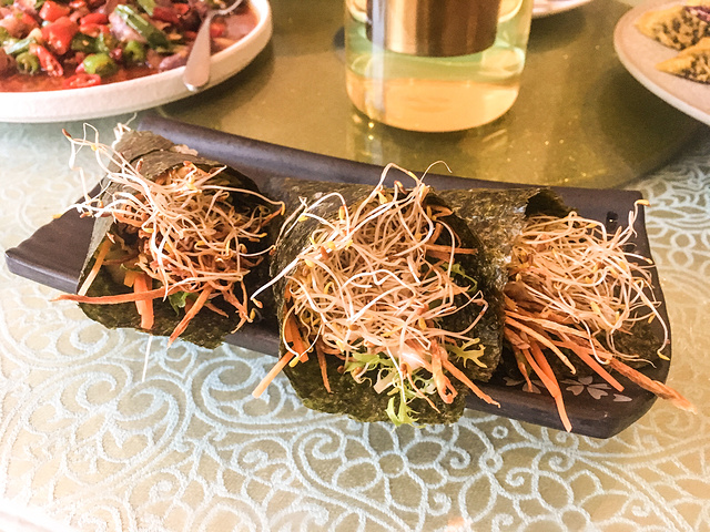 寺庙认识的住持推荐过一家素食餐厅素心素素食餐厅,带我们来吃过两次。餐厅在一个小区的步行街里面,人不多很安静,服务员跟师父很熟。 🌟纯素食主义不可错过的好店 🌟不像其他素食店清汤寡水 🌟看起来像肉的菜实际是菌类或者海里的菜 🥬最推荐的是手卷和牛油果披萨 🥬菇类做法很像水煮肉片 有嚼劲 📍地址:北辰小区商业街 🕓营业时间:11:00-21:00