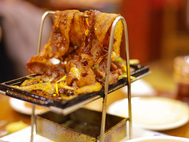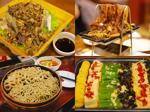 不知道你们有没有同样的经历,有时候做了攻略特意去找的餐厅,网红店,体验感往往不尽人意。不是等位人超多,就是光有颜值或一些空穴来风的噱头忽略了其本真。而误打误撞,走哪算哪,却是容易收获意外的惊喜 去年五一,在呼和浩特街头闲逛,为晚餐觅食找寻餐厅来弥补中午打卡网红店的失败体验,却无意间发现街角灯火阑珊处的这家老店,查了一下是一家有许多分店的老字号 🌿待走进店里,首先是用餐环境: 餐馆分楼上楼下两层,一层相对杂乱一些,因为早上还会有早餐供应,所以本就不大的餐厅里摆满了一行一行的方桌和沙发椅,而用餐时段几乎每一桌都座无虚席 走上二层,环境明显要安静很多。为数不多的几个包间,被珠帘福字装点的些许雅致,沙发椅式的座位也要比楼下宽敞舒适许多 🍴特色推荐: 🔔🔔🔔古法整羊头!古法整羊头!古法整羊头!重要的事情我必须要大声说三遍!简直太好吃了吧!完全没有羊膻味,肥瘦相间肉质,Q弹软糯的外皮,再配上搭配好的特制酱汁,每一口都是好吃到飞起来的感觉。以至于回京后每当在夜深人静的时候,再看到这几张照片都会后悔当时为什么没有肚子把它们全部都吃光……而同样值得推荐的是羊头里的整颗羊脑,这简直是弥补了在摩洛哥不眠广场没有吃到羊脑的全部遗憾。若不是考虑到胆固醇超高的因素,我真是一口都不想剩下它,所以再次翻看照片后悔程度继续+1 推荐指数:六颗星,墙裂推荐!!! 🔺铁架小烧肉,推荐指数:五颗星。别看外表不起眼,但味道同样令人惊艳 🔹葱爆羊肉炒莜面窝窝,一屉上来把莜面卷和面条双拼在了一起,这样可爱的搭配我真是头一次见,配上臊子浇头儿,真的是每吃一口都要拍手叫绝 🔸烧卖,也是它家的一大特色,我准备下篇专门写烧卖。这篇推荐他家的羊肉烧卖,蒸的煎的都好吃 其它特色推荐有:鸳鸯羊杂汤,手抓羊肉,过油肉,百花烧卖,羊肉沙葱烧卖,农家拌莜面 💰关于价格: 4个人一共消费161元,价格亲民超实惠,人均40撑到爆。刚刚说的鸳鸯羊杂汤,与其说是汤却可以称之为锅,满满一锅羊杂分开在红汤,白汤的鸳鸯锅底中,小火慢炖热腾腾的烧着只需要18元,价格亲民又友善对不对 📍地址: 呼和浩特市玉泉区南柴火市街印象江南A15号楼,103号 🕰营业时间: 07:00-14:00 17:00-21:00 📞预订电话: 15754987166 13074738548 如果有机会你也来呼市,一定要来尝尝呦