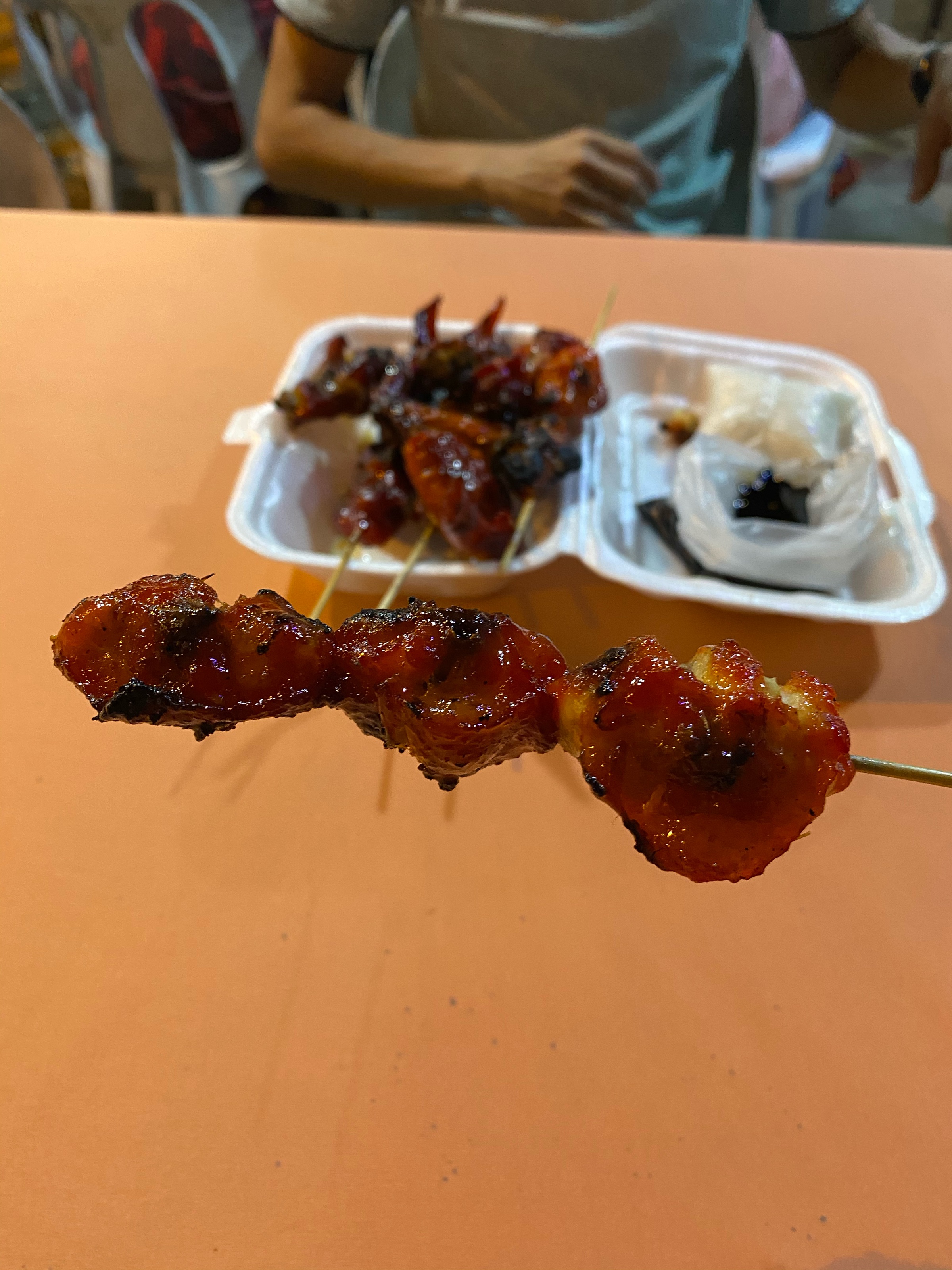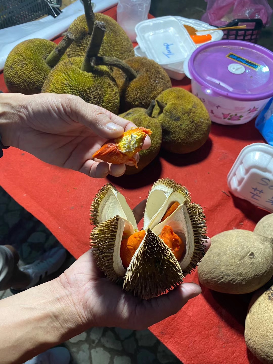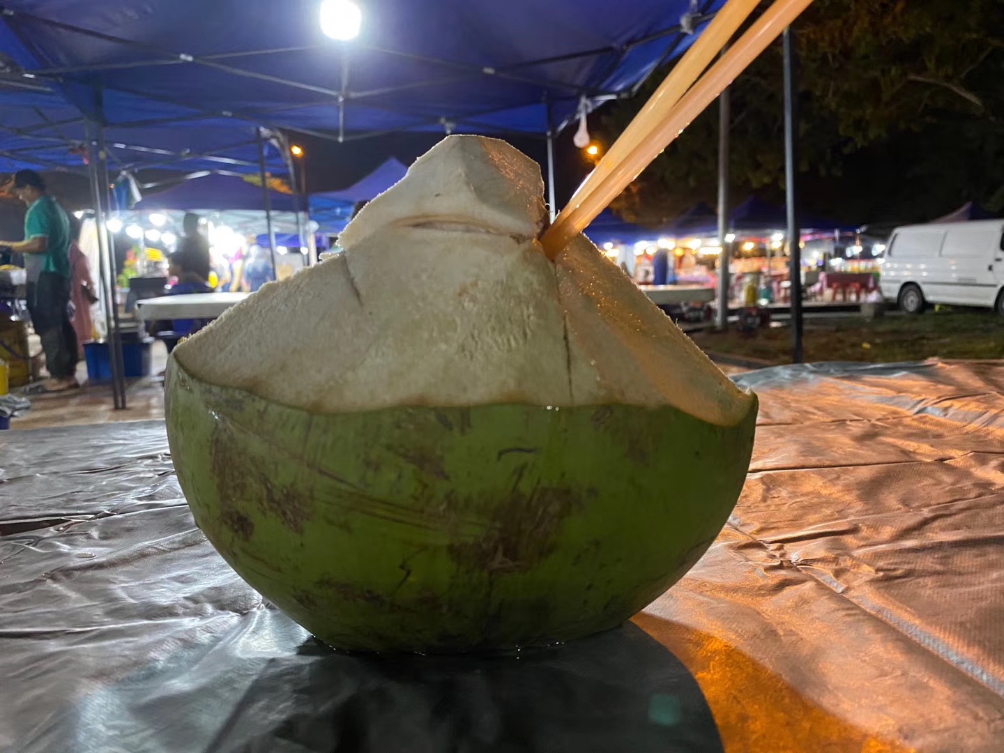 看完日落, 海滩停车场有很多马来人的当地食物, 你们可以尝尝看,(例如,东马特产的山榴莲),喝着椰水,吃着鸡屁股。鸡屁股可是我的最爱。。。