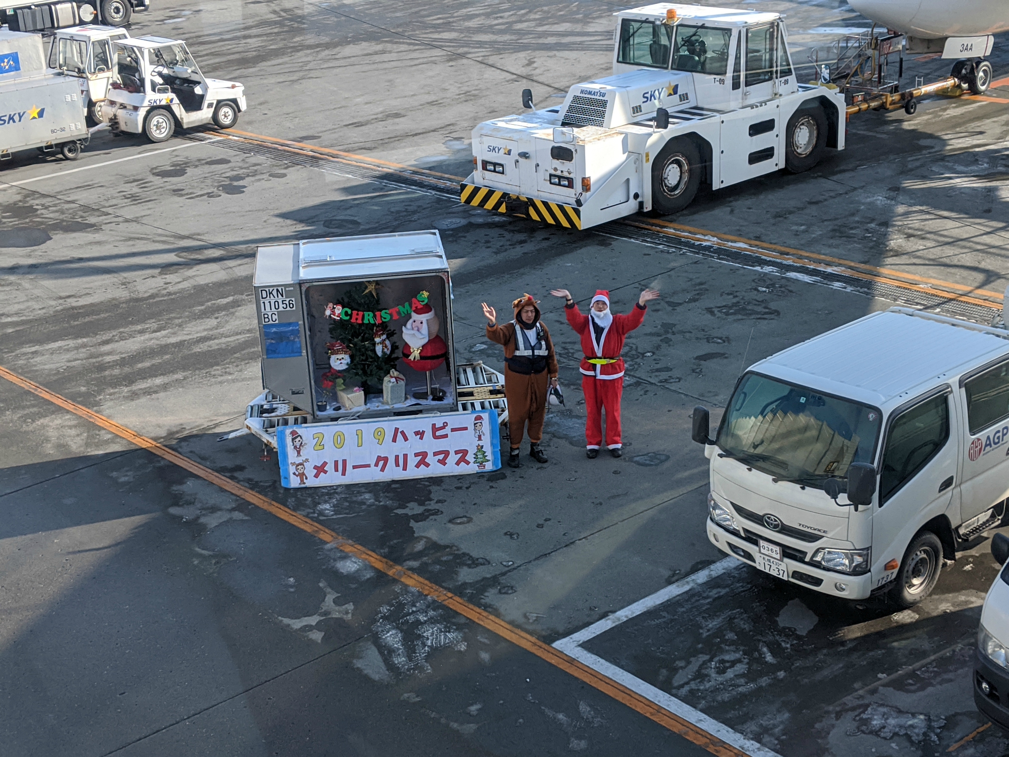 从札幌飞往神户的当天是圣诞节,登机过廊桥时看到地勤工作人员扮作圣诞老人为旅客送行,十分暖心,在日本读研究生的姐姐说日本人的这些小细节有时非常动人。