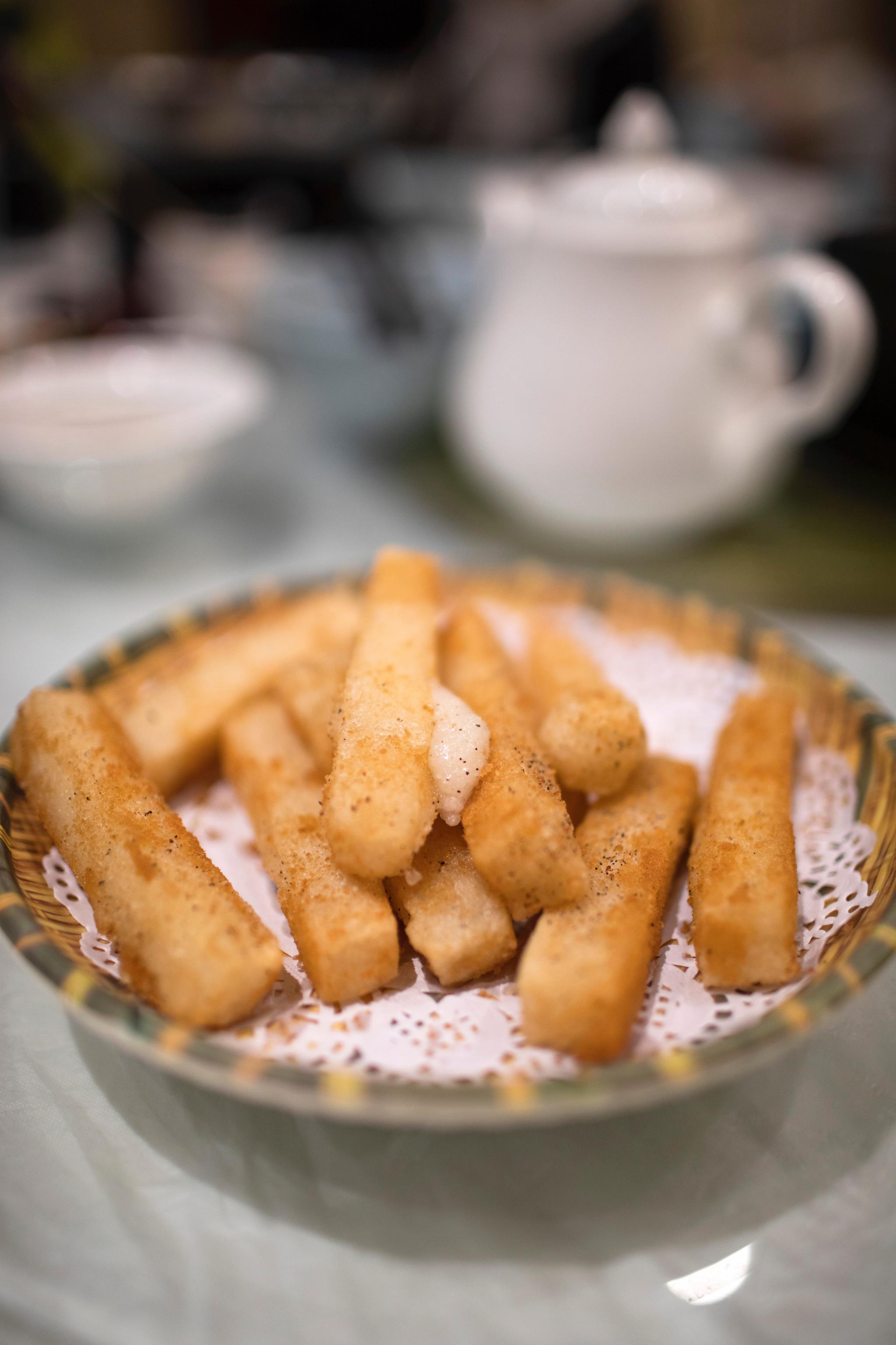 除了早茶三宝,兴化的早茶点心还有很多中可以挑选,藕夹子、蟹黄包、酥皮春卷、插酥脆饼、油炸端子、豆腐花、油炸臭干、糯米烂藕、炕山芋、炸油饼等等。