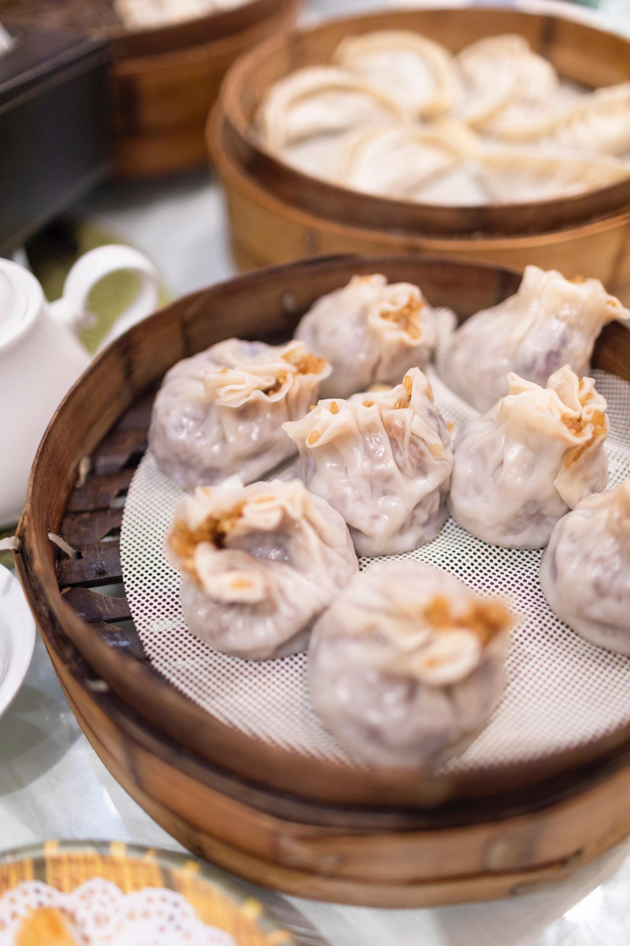 第四道吃点心,烧卖、蟹黄包、蒸饺是兴化的早茶三宝。