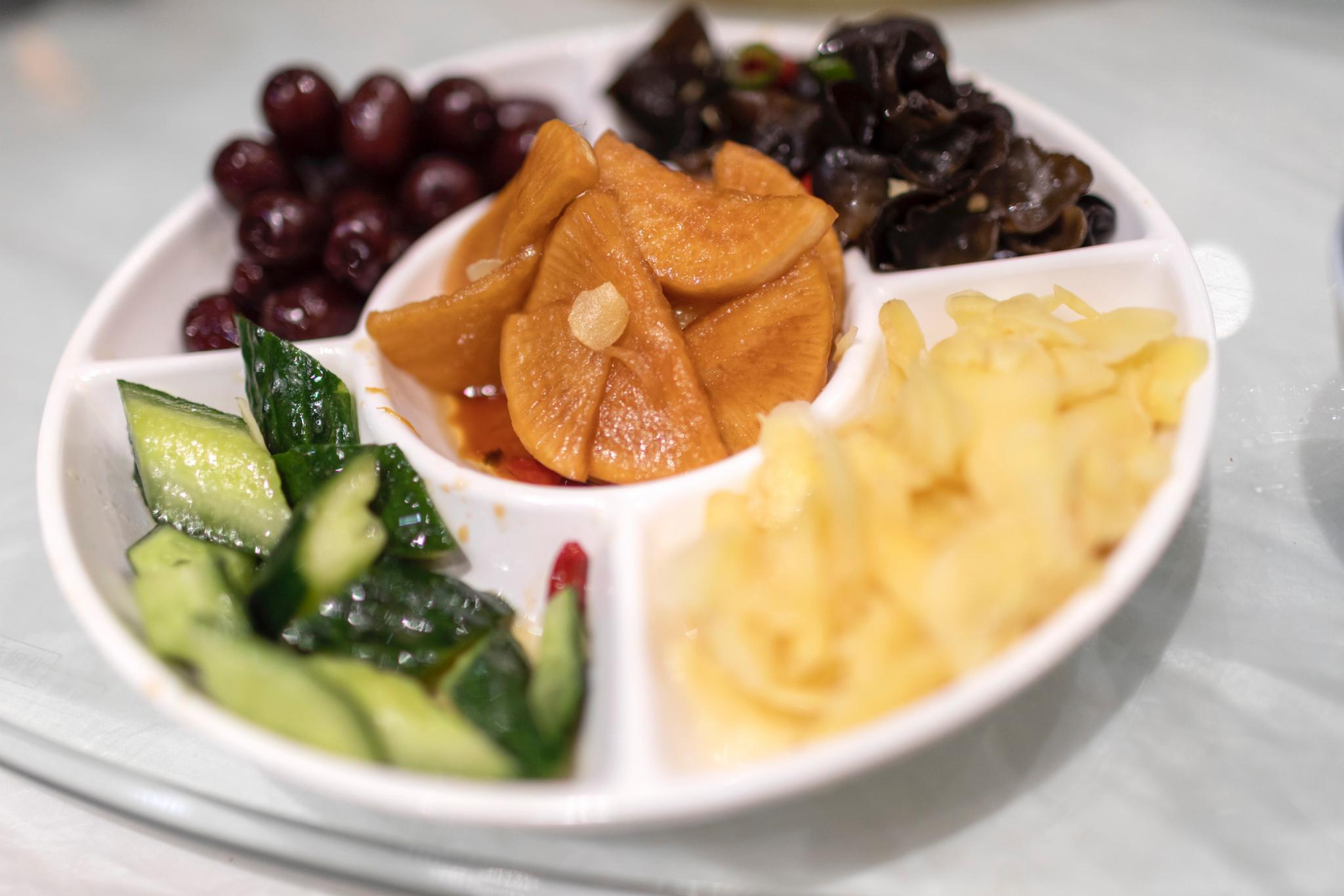 清风茶社在一座酒店的二楼,兴化人吃早茶,精致中透着一些仪式感,讲究:一茶三点一面。第一道喝福香茶,旧时福香茶是用安徽魁针,珠兰和杭州龙井配制的;第二道吃浇头,也就是应时小菜。