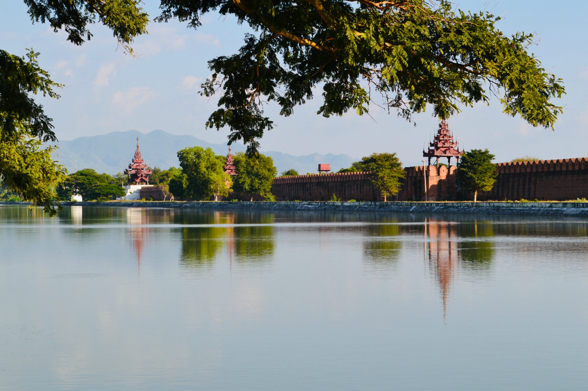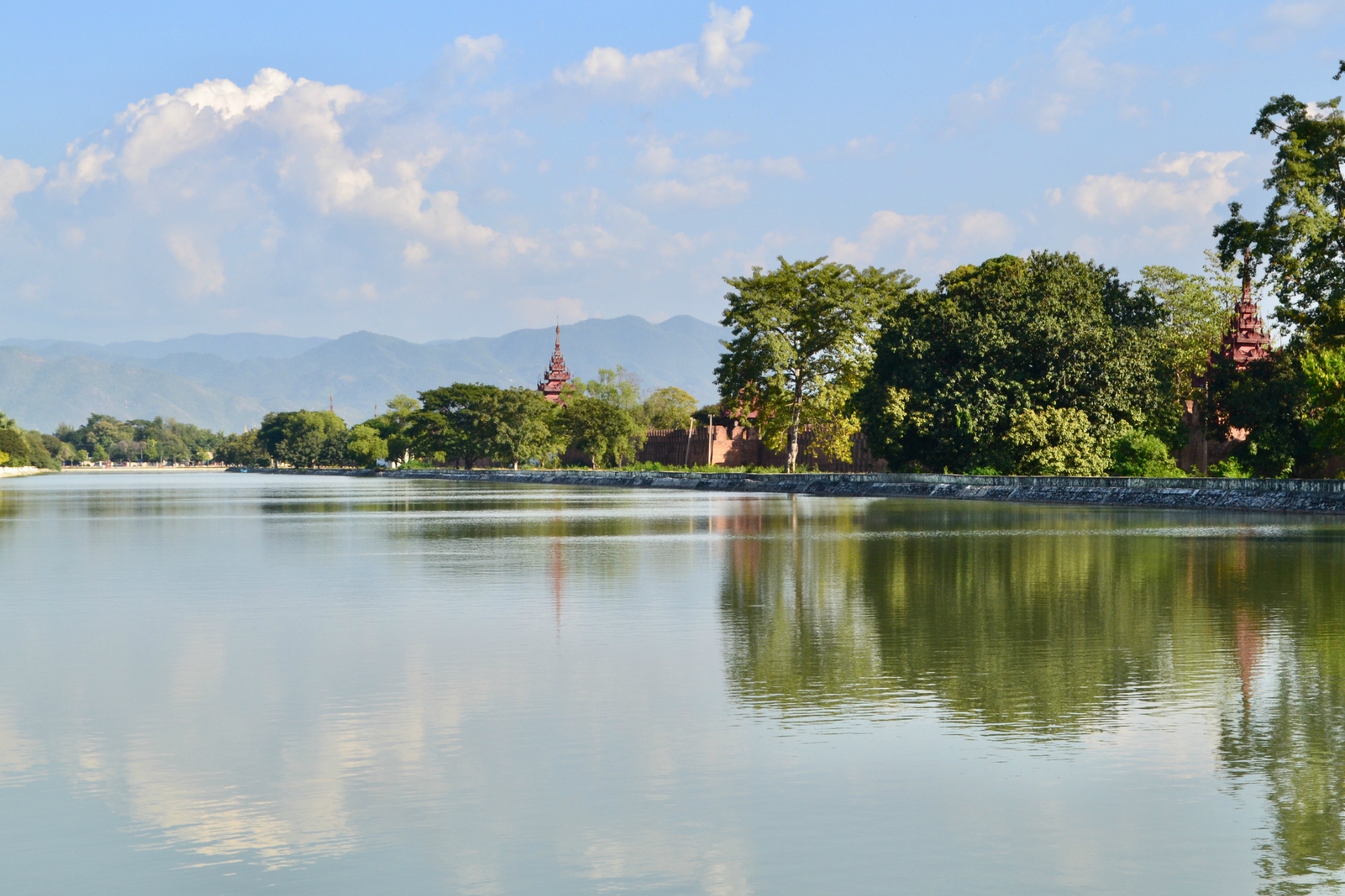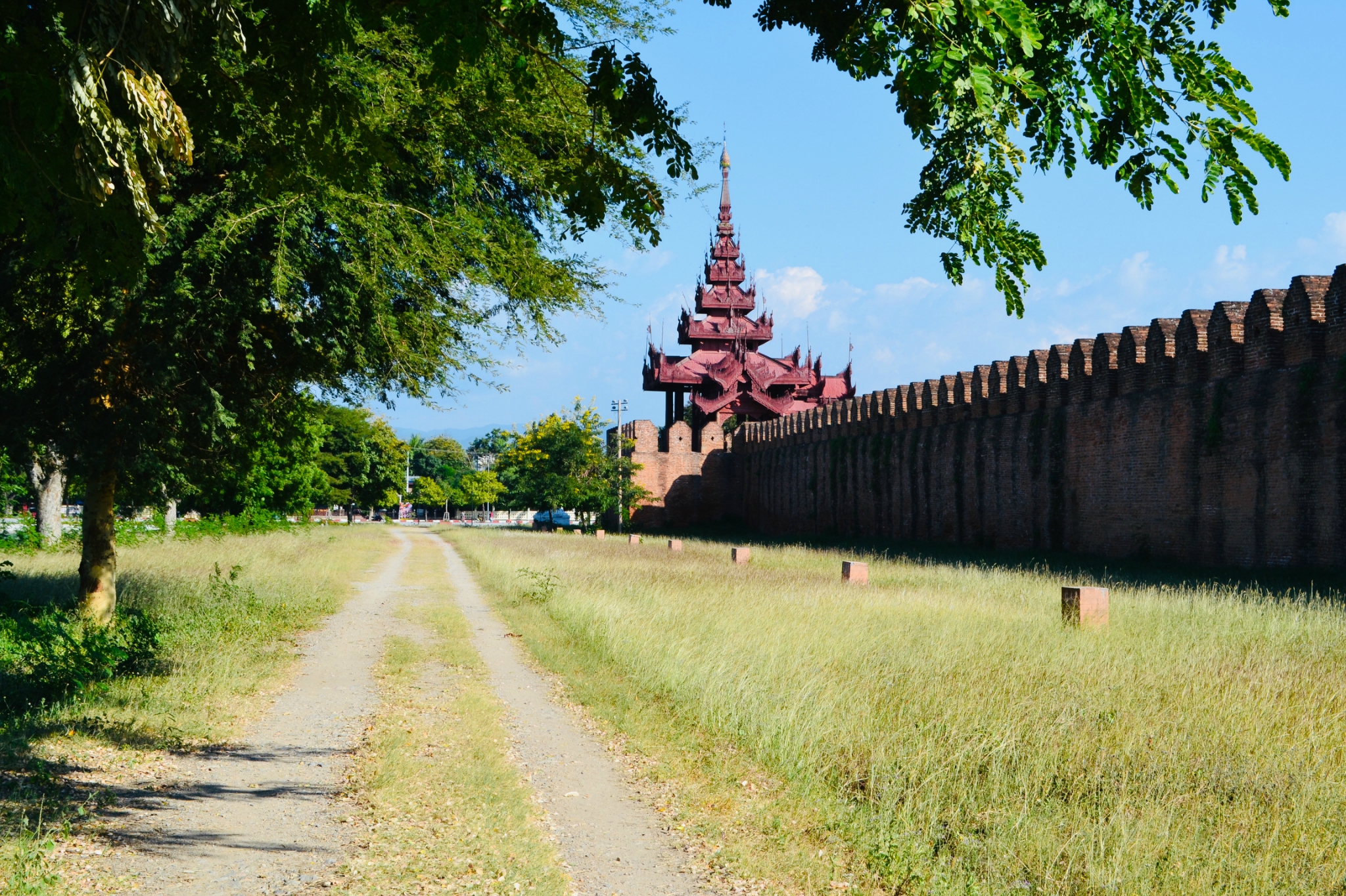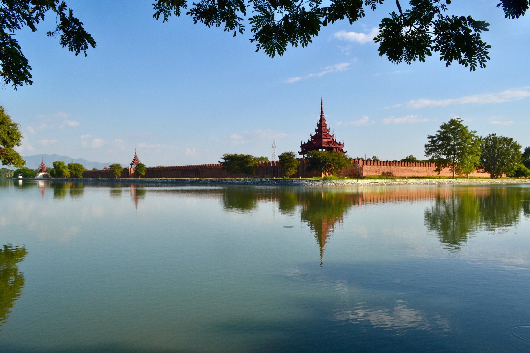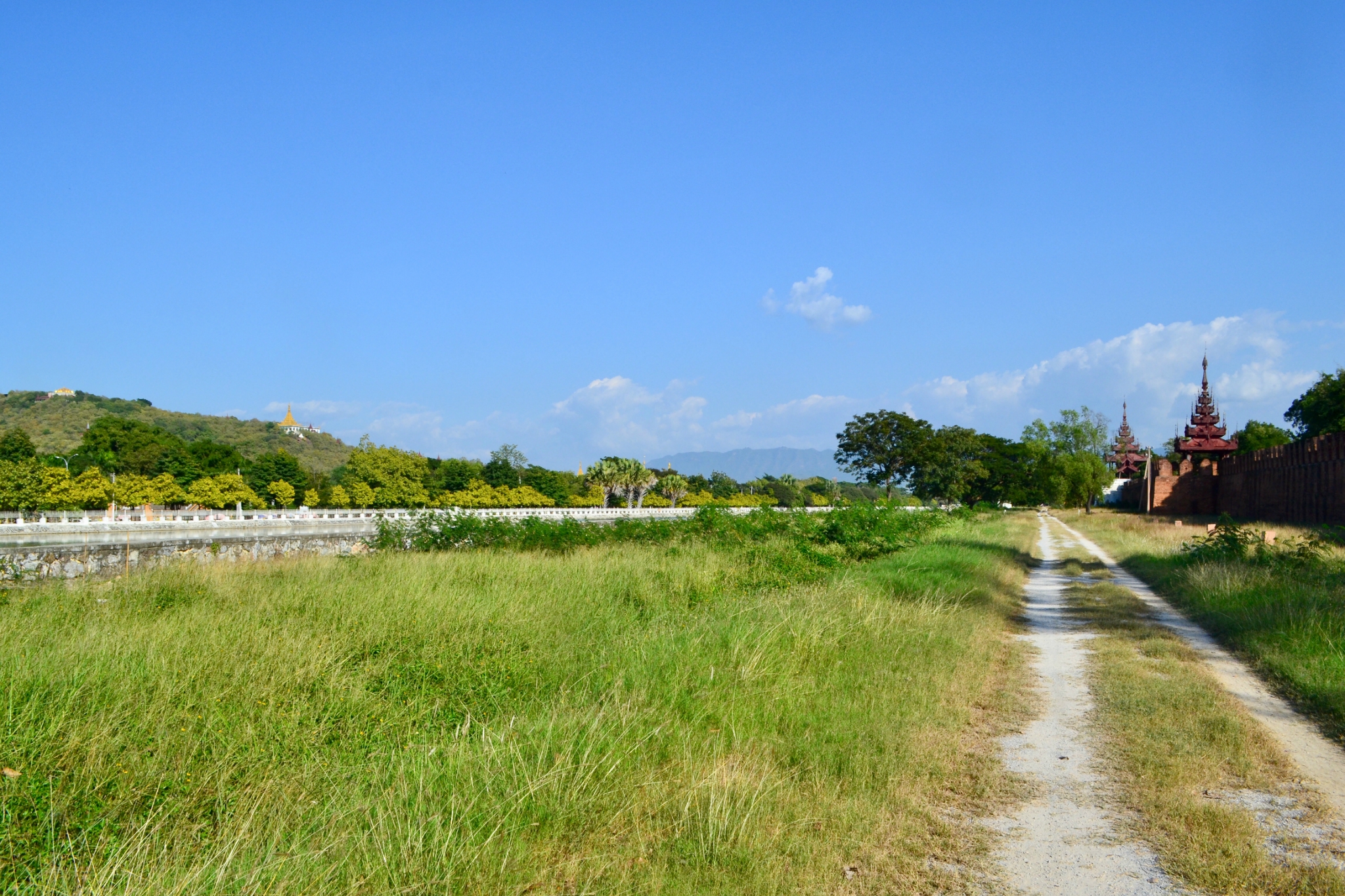 走了好远到了曼德勒大皇宫,没有带护照,大叔不让我进去,哎,真是不太开心的一天!不让进就外面溜达溜达吧,打算外面绕一圈再回去。大皇宫还是很大的,又绕了大概一个小时,没想到另一侧的路上幽静又漂亮,我拍了城墙拍了水还拍了安静相对干净的街道,原来曼德勒不全是脏乱差的,也有人少干净的街道。