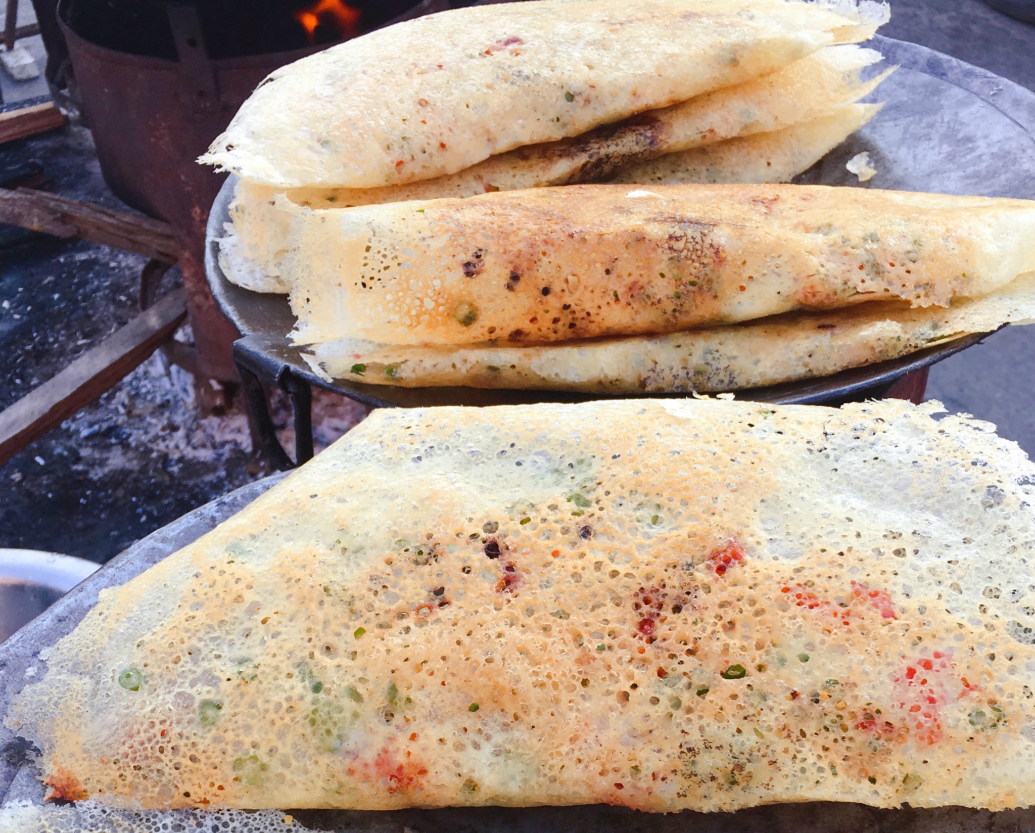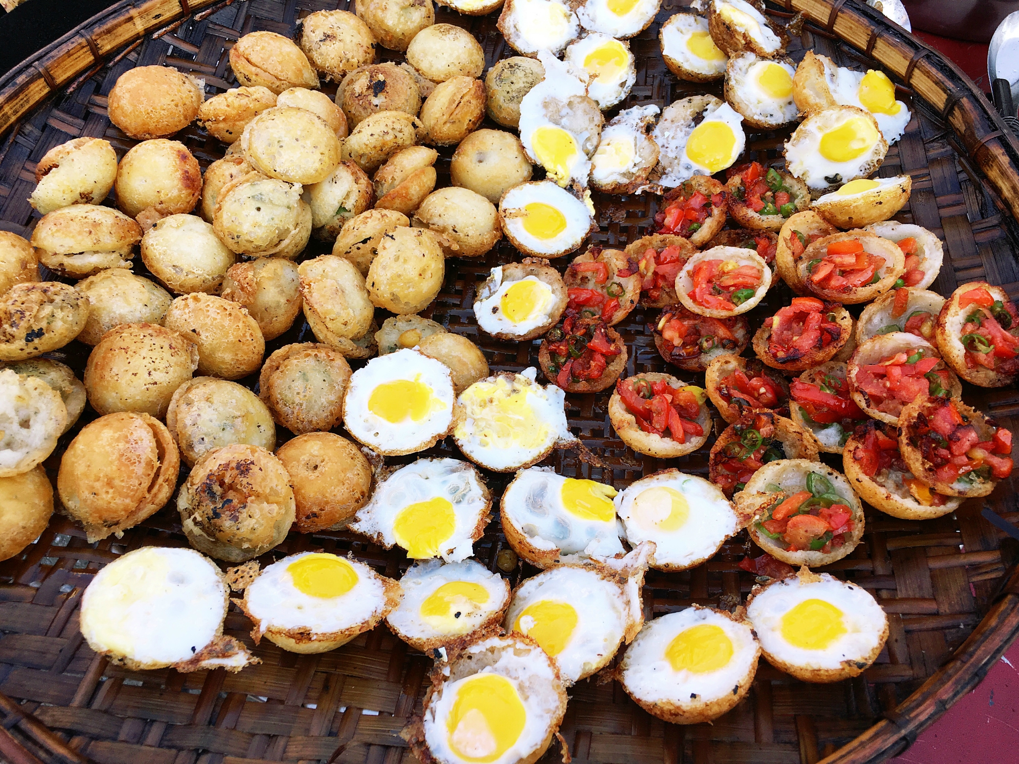 路上还遇到一条小吃街,好多当地人在吃,看哪个都想吃啊!那个煎饼里面是青椒胡萝卜一类的蔬菜,但是据说是辣的,鹌鹑蛋也是发物,过敏的我在小摊旁边站了半天,最后还是咽了几次口水咬牙走开了。