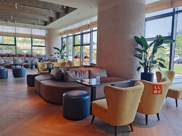 午后阳光幸福的嘉兴,享受告别城市喧嚣,寻觅一份别样惬意生活。 🌿🌿🌿🌿 趁着午后阳光透着玻璃欣赏绿茵成片美景。 下午茶甜品种类很多, 既有好吃的欧包还有颜值满满的甜点。 种类太多,选择困难的我,就不纠结了来一份双人餐,128元一份,没想到惊喜满满~ 💃💃💃💃 别致树叶层层造型架子,质感满满,里面居然有5层小托盘,每个托盘里面都是颜值下午茶。甜咸搭配,软硬搭配,三文治,软点心,糕点,马卡龙,既有颜又有值。价格也是真的惊喜~也太实惠了,而且分量也不小,关键是每个人都可以吃到自己喜欢的~味道也不错 🌿🌿🌿🌿 饮品选择有咖啡和茶,自己任意选择20多款,总有自己喜欢的。 ✨✨✨✨ 皮质沙发一如既往保持万豪系列,品质与舒适结合理念,还有柔软靠垫。 ☀️☀️☀️☀️ 超大的落地玻璃窗,欣赏窗外美景,感受精致下午茶生活。 ✨✨✨✨ ⭕️名字:嘉兴福朋喜来登酒店大堂吧 📍地址:嘉兴经济开发区吉杨路789号酒店一楼 👍推荐:下午茶双人套餐 🚘交通:建议自驾游,门口有停车场