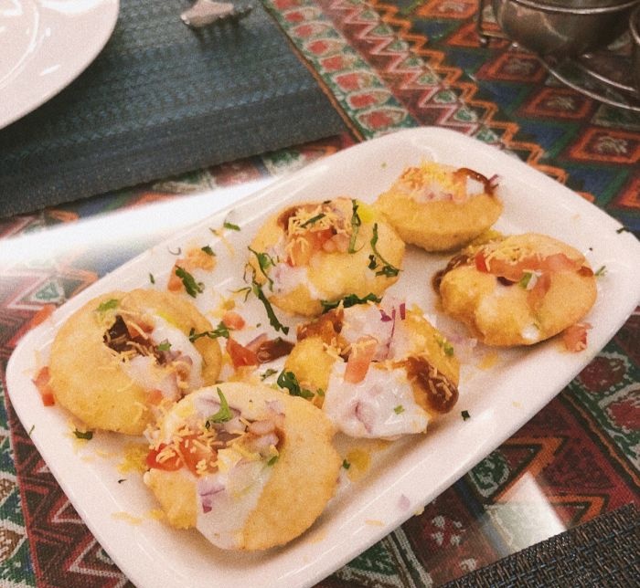 土豆玉米饼 :这个就是炸土豆饼加了玉米,感觉蘸咖喱鸡里的咖喱更好吃。另外点了芒果奶昔特别好喝,应该是所有点的东西里唯一没什么香料味的了,整体口味不一定适合大家,相比之下我也是更喜欢茶餐厅一些,毕竟中国菜太好吃了,不过偶尔尝尝不一样的味道也不错。