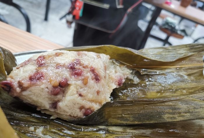 粽子:看基本每桌都点粽子,自然是要点一个吃吃看的。里面是红豆,但是是咸口的,每口都不粘不干,口感一流,就是肉馅比较小,但是很香。