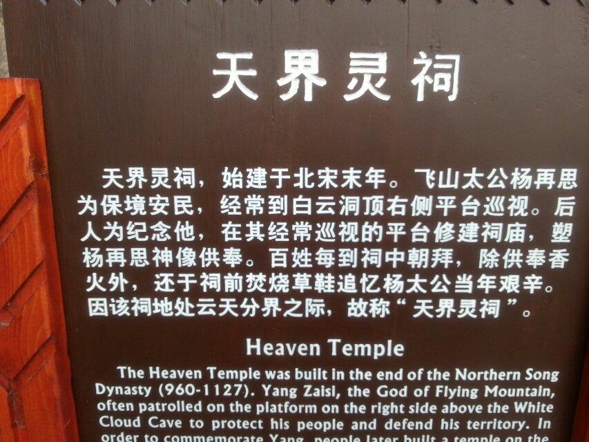 飞山距湖南省靖州县城西北5公里,海拔720公尺。古有"忽一峰飞至"因名飞山的传说。然飞山异峰突起,巉岩壁立,四面陡绝,顶复平旷,如钟似鼎,因而为五溪胜景之一。历代墨客文人攀游吟咏之地。五代时马殷据湖南,称"楚王",派兵征剿诚州(现靖州县),飞山峒酋潘金盛、杨承磊凭借飞山天险聚众抵抗,现山上堑壕犹存。五代未,杨再思被众人奉为诚州刺史,他死后,人们于飞山绝顶建庙祭祀,并称杨为"飞山爷爷"。飞山上岩洞嵌空,庵寺林立,古迹甚多。头宝鼎、二宝鼎、三宝鼎雄居峰巅。其中头宝鼎居飞山之首,名号"绝顶",三面巉岩,有一石伸出峭壁之外,上刻"凌云"二字,俗称"舍身岩"。峰顶庵寺为宋元丰年间所建,清光绪已亥岁(1899)被焚,癸卯年(1903)重建,均为青石结构,拱形屋顶。靖州电视差转台现设于此。二宝鼎比头宝鼎地势略低,是登头宝鼎的必经之路。相传元末少数民族丁伸仔曾以此为据点,聚众起义。据康熙《靖州志》载:山上屯兵之处,"尚有米穴",其米黑而成石,人称"乌米",现仍有黑米粒可寻。三宝鼎规模虽小,但全为石料建成,结构严谨,玲珑精致,为康熙三十二年(1693)所建,至今完好无损。