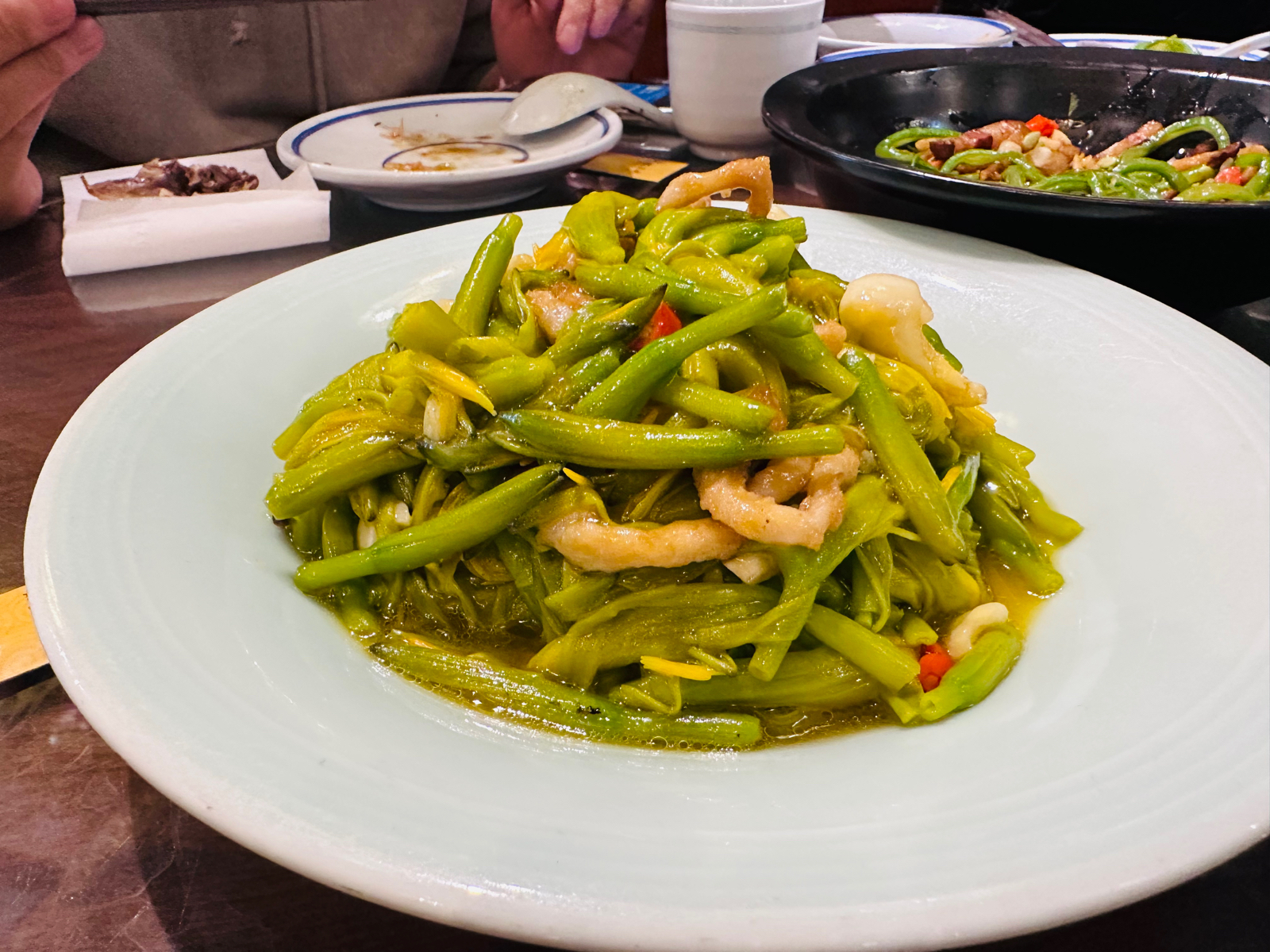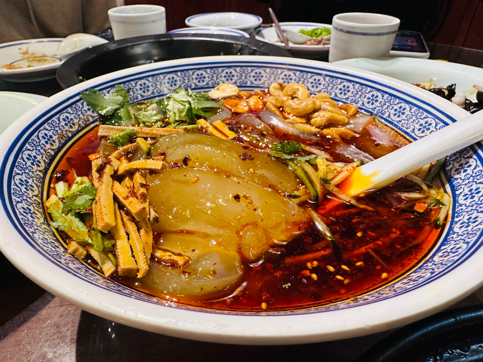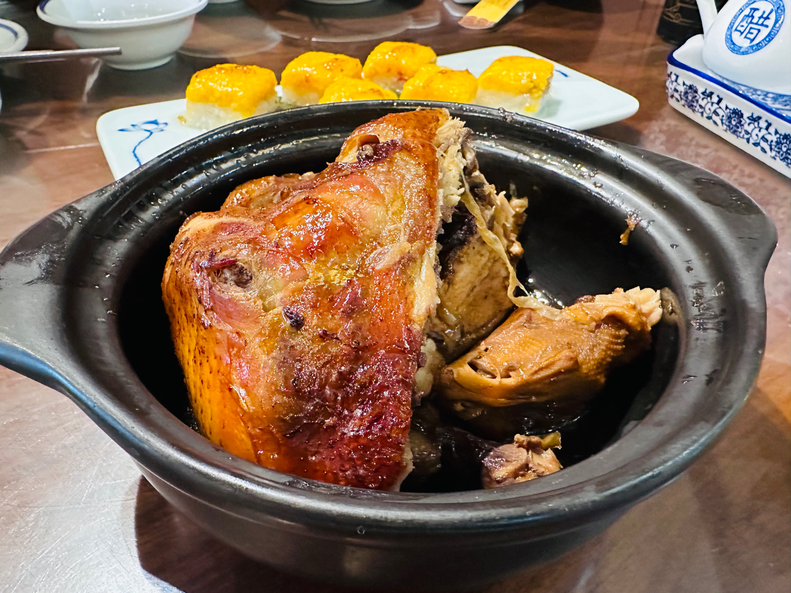 大同很多餐厅🍴下午是休息的,周边搜了一圈🔍发现这家还在营业,而且正好也想尝尝烧麦,于是直奔这里。 🍃环境: 虽然已经过了午饭高峰期,但是店里的客人依然还不少。餐厅是古风建筑风格,装潢的很有感觉。店面很大,摆放了很多桌子,可以容纳很多客人。或许是太红火,也或许是服务员太忙的缘故,店里的卫生确实不敢恭维,我们入座的圆桌下方很多上一拨客人剩下的垃圾,一直没有人清扫,只好自己拿笤帚🧹去来清理。 💁服务: 服务员都比较忙碌,服务上有些跟不上,清扫🧹、点菜、结账🧾等等都需要催促或者等待⌛️,估计是因为过节期间,希望之后可以改善。 🍜菜品: 来烧麦馆,烧麦自然是必点,大家都要尝尝,于是选了精品羊肉雪花烧麦和牛肉雪花烧麦,皮薄馅多,蘸上料汁味道不错;王府密制鸡半只是网友推荐的,不是我们只点了半只,而是这道菜就是半只份,这样也好,不会浪费,鸡皮烤的焦脆口感很不错,份量适中;老大同过油肉的里脊肉很嫩,不过确实油比较多,减肥人士要谨慎;香炒大同鲜黄花和干锅咸肉扁豆角其实本身是当素菜点的,份量适中,油也比较多;来大同,自然还是要来个浑源凉粉尝尝,凉粉本身味道一般,配料还不错,整体酸辣口味。 📍位置&交通: 万达广场4层,周边公交车🚌很多,自驾🚗也很方便,万达广场地下有很大的停车场🅿️。