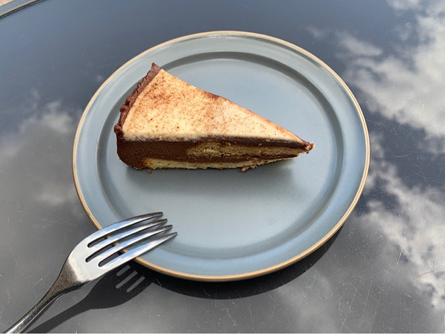 朋友推荐的网红店,离南锣鼓巷很近。 天气非常好,我们直扑顶楼的露天座位,撑上阳伞不至于太晒,初夏的风还让人觉得有些凉爽,非常舒服。顶楼的位子不少,如果坐满会稍显拥挤。 冷萃总体口感不错,入口有一点点涩,回味有些反酸,搭配巧克力慕斯也算合适。蛋糕甜度适中,吃起来不会太腻。