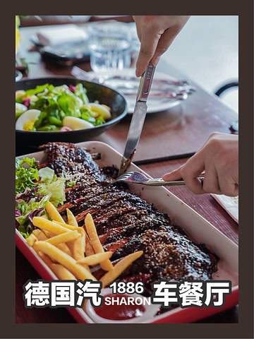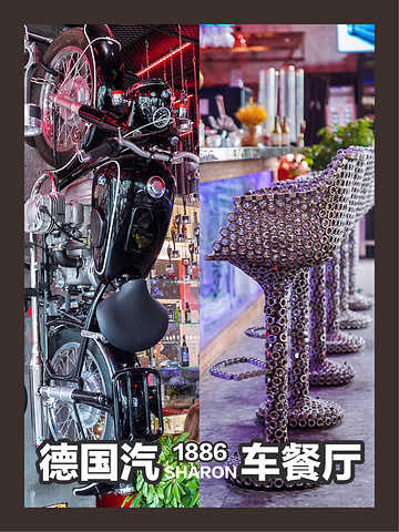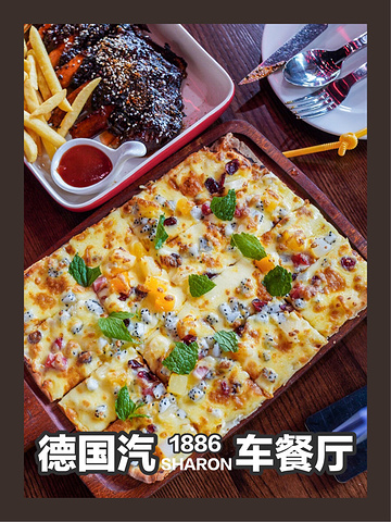 🚗嘉里中心的这家汽车元素的餐吧,是近来打卡的热点。白天的酒吧是个西餐厅,下午还可以拥有下午茶时光,夜晚就是激情四射的酒吧,可以欢乐到凌晨。这个周末我们就去喝一杯吧! ———————🔖实用信息🔖———————— 🚗店铺名称:1886德国汽车餐厅(嘉里中心) 📍店铺地址:杭州延安路353号嘉里中心3主楼1层 ⌚️营业时间:11:00-24:00 🅿️停车攻略:有收费停车场,地铁🚇2号线直达 ———————🔸今日菜单🔸———————— ▫️水果风味火焰烤饼💰88 长方形的水果披萨,薄脆款。肉眼可见的火龙果,菠萝,蔓越莓,火腿丁。毫无压力的搭配食材,看不见热量。已经为您切割好小块的烤饼,也很方便食用。香甜的滋味,让这个午后更值得回味。 ▫️秘制烧烤伊比利亚黑毛猪肋排💰178 总体菜品都是甜系列,肋排涂了蜂蜜,肉质就更为细腻,蜂蜜的甜度也不高,恰好综合了烧烤的气味。白芝麻的点缀更加增添了香喷喷的口感。燃尽了脂肪,现在就只剩最棒的精华等你来品尝。这也是推荐度比较高的一个菜品。 ▫️巧克力熔岩蛋糕💰68 来一份甜品来圆满今天的下午茶,巧克力熔岩蛋糕,再给你一个香草冰激凌。口味中规中矩,不过颜值还在适合摆拍。 ————————✅TIPS✅————————— 🌿餐厅环境🌿 360度旋转的鲜红色兰博基尼超跑,悬挂在餐厅的顶部,一进餐厅就被视觉的冲击深深吸引。各种汽车零件元素都被充分在餐座,餐具,食物造型,环境布置。餐厅有吧台区,卡座区,和中庭简易餐桌区。你可以根据要求选择不同区域就餐。 💁🏻♀️餐厅服务💁🏻♂️ 周末的下午还有幸运小活动,定位发朋友圈会有小礼品赠送,那真是来得早不如来得巧。桌上的餐具都用保鲜膜塑封,吃披萨的时候,可以问小姐姐要食品手套来用,很方便。贴心的小服务总可以感受到特别的温暖。 🌈餐厅特色🌈 德国汽车餐厅,酒吧餐厅合为一体。提供西餐和酒水饮料,德式烤肉加上冰爽的啤酒🍻,欧式东北菜的豪情满怀榨这里隆重上演。 💰人均消费:165