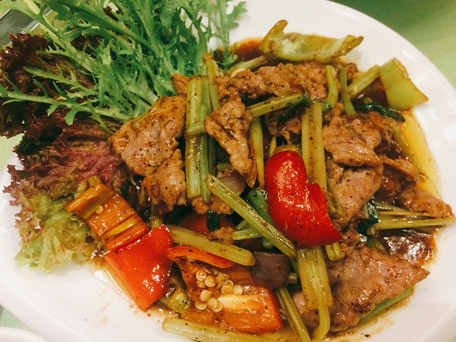 十年往上的泰式料理,绝无分号,仅此一家。 吃货朋友带路,从此觉得它家的咖喱醉迷人,去了一趟泰国东吃西望还是不能比拟也撼动不了心中泰菜No.1地位,各人私以为泰国本土放大了酸辣咸甜苦的味觉,国人体验后只会觉得齁咸,食材本真的味道就稀疏寡淡了。香遇巴黎懂得结合国人口味优化成既有泰味又能最大保持食材鲜度的料理,也才能百吃不腻。 泰式生蚝,绝逼新鲜出炉的生蚝搭配泰式特调酱料,泰鲜甜! 图二牛肉爆炒后加了黑胡椒,牛肉的嫩度被黑胡椒浇灌后更提味,味道偏向于闽菜,好吃的那种。 咖喱皇炒蟹,蟹的个头明显比别家个头大,壳硬肉实,咖喱酱的存在让平日不太吃吃米饭的我也下去了一碗,泰国米也是加分项。 火山排骨是新菜,型似火山,微酸微辣的它煮煮后更入味。 桂花鱼被青柠后鱼的灵魂才被真正的召唤出来,一下筷就被我下去了一整面。 香茅浸虾,好像被松骨后的活虾乖巧地栖息在手指杯里,合着料一口闷才是活虾真谛。 又想念它了…