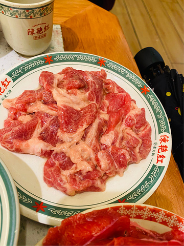 陈艳红老火锅现在38买100代金券,不去吃一次真说不过去! 上个月去了建设路店,这次跑到春熙路店,感觉差别还挺大。 春熙店在热闹的商业区,虽然可以网上拿号,但等位也起码40分钟。 等位的时候秒杀了一份1元钱的冰粉,选的传统的红糖糍粑口味,怎么说呢,山楂、葡萄干、芝麻都有,份量还是足够的,味道很一般。恰恰前几天吃了胡悠记,不得不说差距还是蛮大的。 吃完冰粉正好可以进去,肚子饿死了。 点了番茄牛腩和红油的鸳鸯锅,这个选择很明智。番茄牛肉的味道相当好,喝汤都觉得很美。红油锅底也是也越吃越香。 三个硬菜: 1.牛奶牛肉,非常大片、十分新鲜,第一个下锅煮,味道好极了。 2.老重庆滑肉片,这个十分地道,滑肉的口感体现了猪肉的香,就是有点粘结,不知道是刀工问题还是冻的时候粘在一起。 3.多肉午餐肉,切得厚厚的,久煮不烂,配火锅粉超好吃! 三个素菜: 土豆片、藕片和苕粉。基本上我吃火锅必须点苕粉,不然这顿饭都不香…… 它家的苕粉蛮奇怪的,宽的两指多宽、窄的比小指还细,这是手工切的么?还好味道不错。 此外蛋炒饭也还可以。 服务方面一般般,可能店里生意好,没有换骨碟、加水也是最后来了一次、点了米饭也是催了2次才上…… 这顿火锅三个人吃了176,去掉代金券是76,如果是原来的价格则不算太便宜,中档吧。我记得建设路店都是小份菜,同样价格如果要体验更丰富菜品可能去建设路店更好。