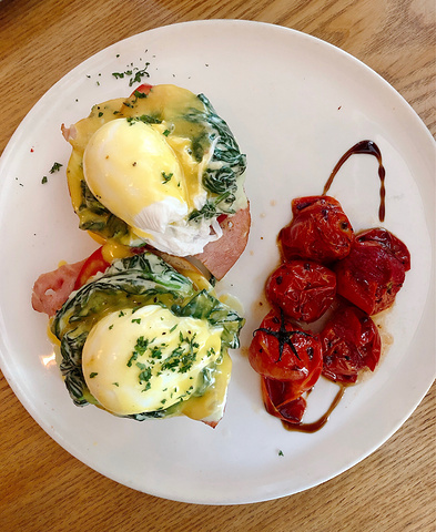 👍口味评价: 📌「班尼迪克蛋菠菜火腿早午餐」想吃班尼迪克蛋来the rug就对了!这款菠菜火腿的感觉比手撕牛肉的好吃😋菠菜火腿跟鸡蛋的味道更加搭配!香香软软 📌「猫王花生酱法式吐司」花生酱很浓郁!外皮酥脆!枫糖浆也很甜! 📌「野莓核桃蜂蜜希腊酸奶」也是超爱的一款酸奶,很浓稠,蜂蜜和核桃都很多,吃一口满满的满足! 📌「拉花拿铁」一如既往地棒! 📌环境:比朝阳公园店大,但是人太多,挨着窗户的座位光线都比较好,但中间的座位就座位有点黑。 📌服务:服务很好!看我是孕妇还帮我安排了很舒服的座位