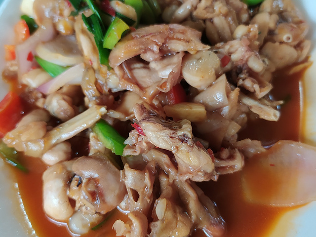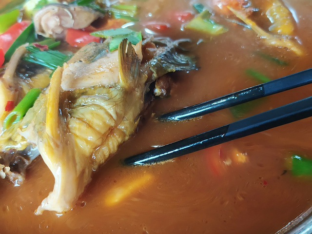 红灯笼姥姥饭店·江景餐厅 地址:杭州市桐庐县瑶琳镇红灯笼外婆家景区门口(天目溪皮筏漂流) 营业时间:09:00~21:00 🏮 环境:来桐庐瑶琳仙境玩,正好雨后云雾缭绕空气清新,中午吃饭本来想去大娘舅家吃饭,不过人家满了只能去旁边的姥姥饭店,靠近江边的位置都没了只能去里面,空调有些不给力! |杂鱼锅仔^98RMB,里面有汪刺鱼,鲫鱼和小湖蟹,他家的杂鱼锅是我吃过土腥味最重的,汪刺鱼一入口就是满嘴的土腥味根本没法吃! |酱爆石蛙^78RMB,其实就是青椒洋葱炒牛蛙,蛙肉炒的非常老,吃起来很塞牙,调味稍微有点淡! |生炒土鸡(半只)^68RMB,这个炒的还算是中规中矩,鸡肉没什么腥味! |外婆豆腐^18RMB,一整块老豆腐,不过酸甜口的吃起来非常怪! |椒盐小土豆^22RMB,外面炸的很硬,里面吃起来有点发苦,椒盐味很淡! |高山野菜^18RMB,这个算是所有菜品中味道最好的,比较清爽! 🔔 服务:店里接团餐比较忙,上次有些慢,基本都是未成年的小女孩给我们上菜! 总的来说不太建议去他们家吃,味道真的会踩雷 【人均】60RMB 【推荐指数】🌟🌟🌟