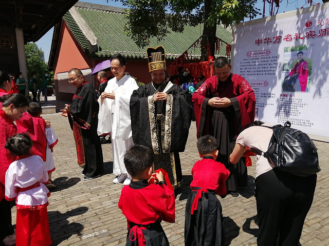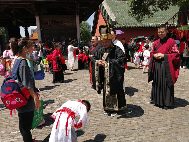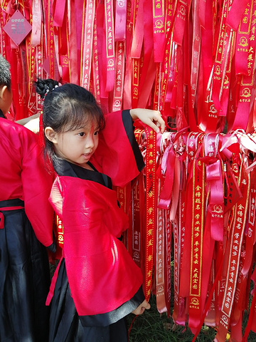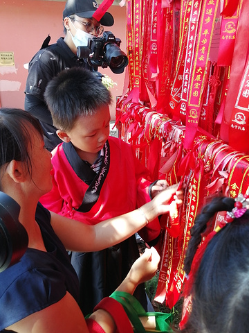 弘礼学院为弘扬中华礼学风尚,传承仪礼传统,为广大学子祈福组织了一次启智开笔礼。活动的最后一项就是挂许愿带。 击鼓鸣志结束后,学童们和家长一起来到大成殿广场,家长拿起自己孩子的许愿带,陪同孩子把许愿带系挂在孔庙的许愿树上,自此,学童开笔礼圆满成功!