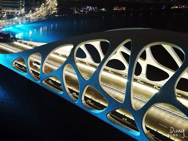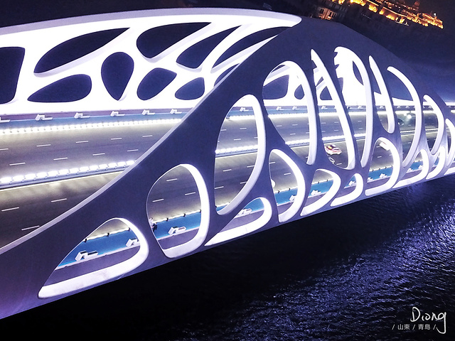晚上时候会特别美,入夜之后,整座桥都会亮灯,而且是五彩斑斓的颜色随时在变换,所以晚上来欣赏贝壳桥的话